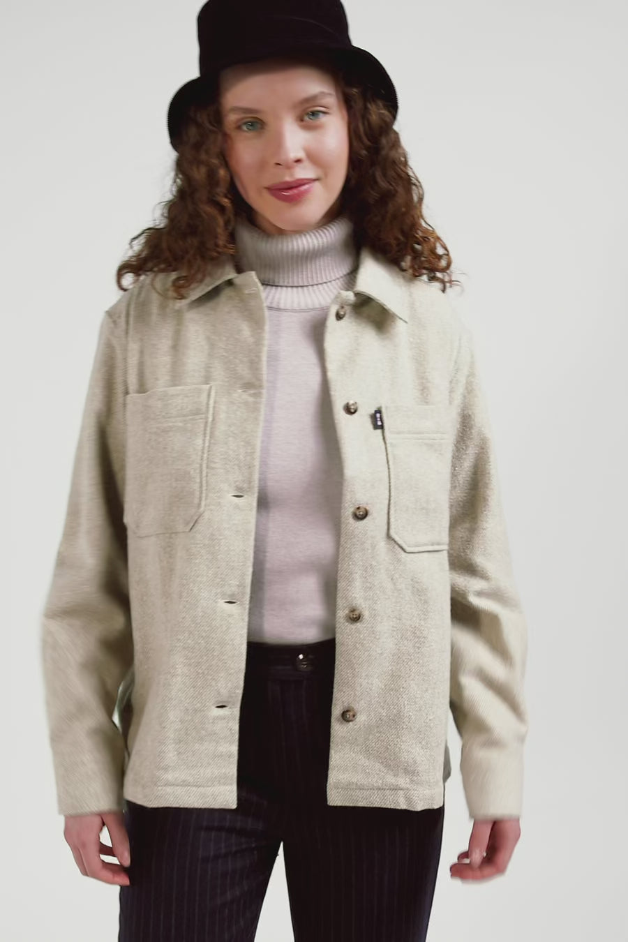 Surchemise en coton mélangé beige à poches plaquées coupe Relaxed