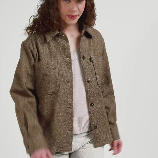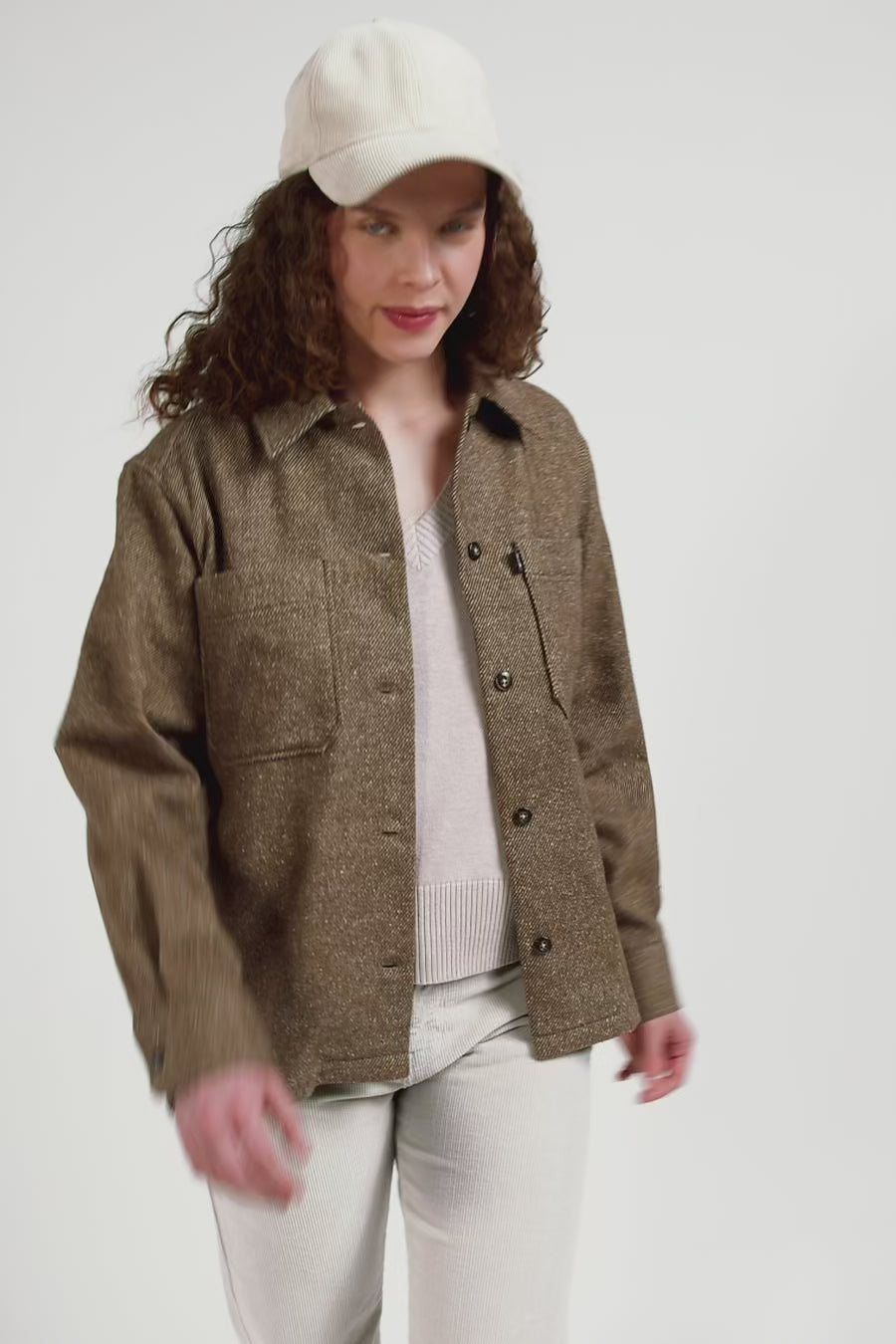 Surchemise en coton mélangé marron à poches plaquées coupe Relaxed