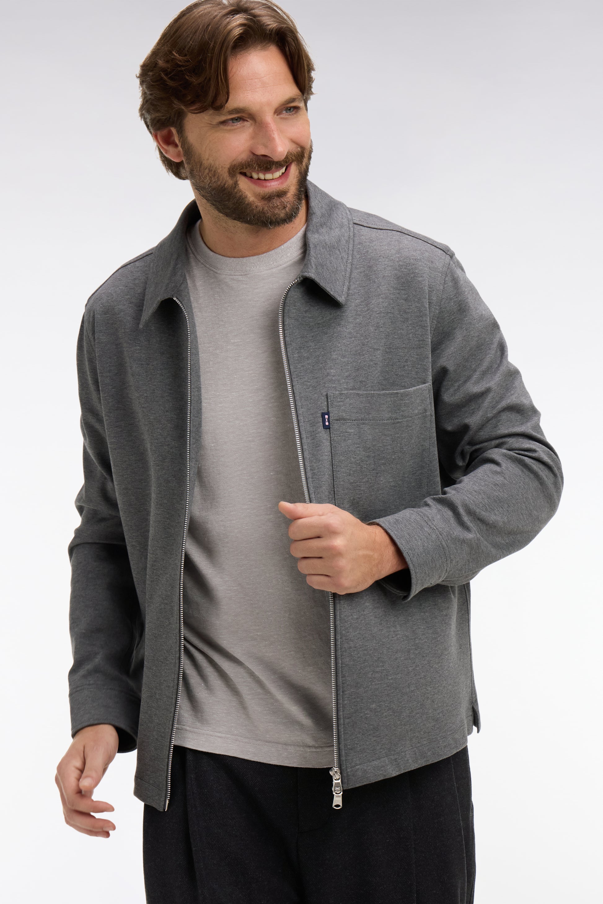 Cette surchemise zippée allie confort et élégance décontractée. Sa matière en coton stretch et sa coupe droite offrent une allure moderne et facile à porter.
