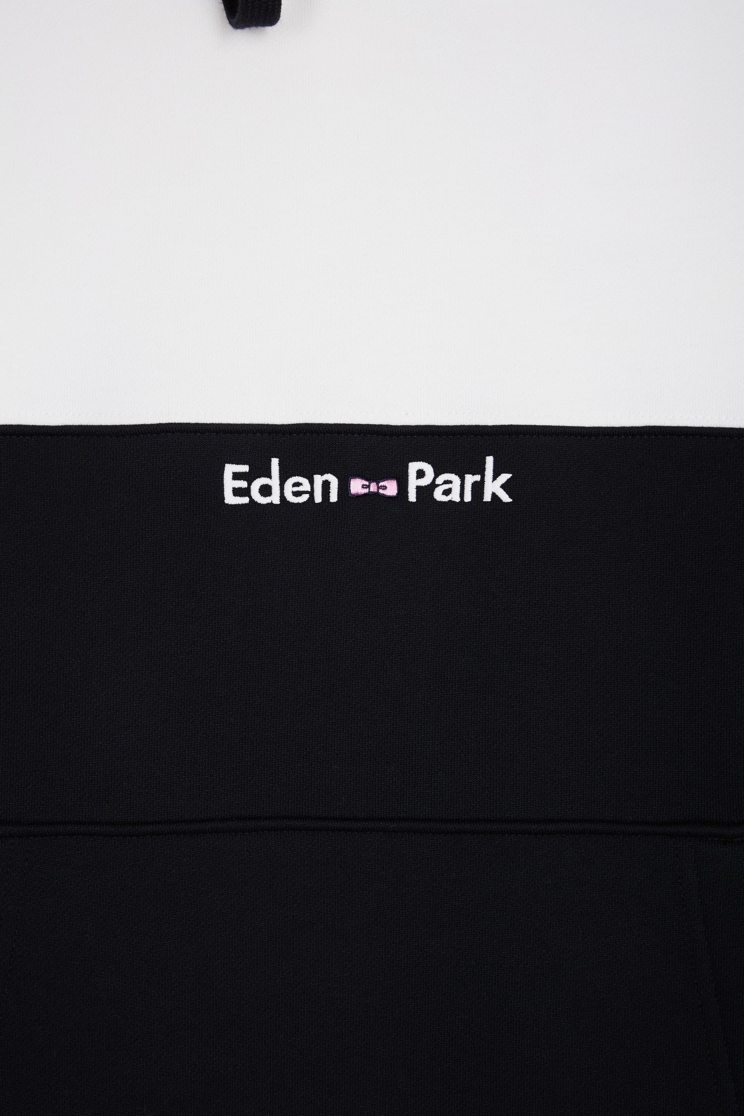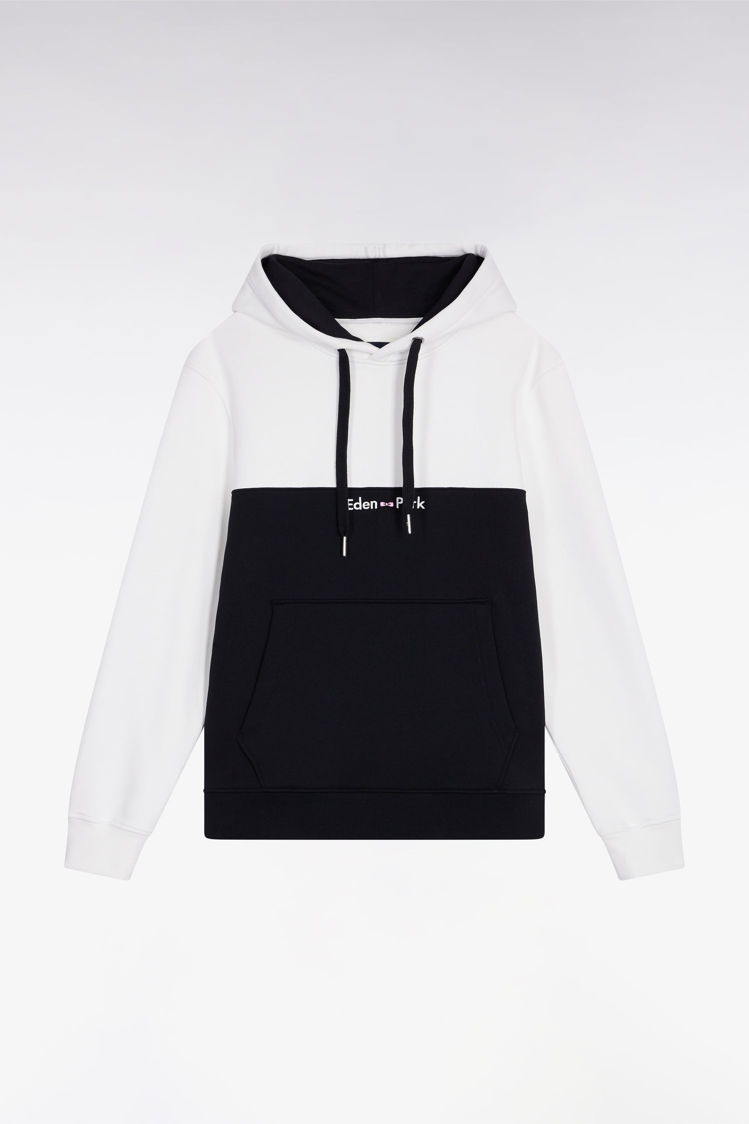 Avec sa coupe droite et son molleton gratté doux, ce sweatshirt bicolore marine et rose, ciel ou blanc incarne l’essence du confort selon notre Maison. La broderie Eden Park à l’avant affirme discrètement son identité, tandis que les finitions en métal argenté et les bords-côtes aux poignets et bas de pièce renforcent son allure soignée. Une pièce graphique à l'intérieur de capuche et cordons de serrage marine pour plus d'élégance