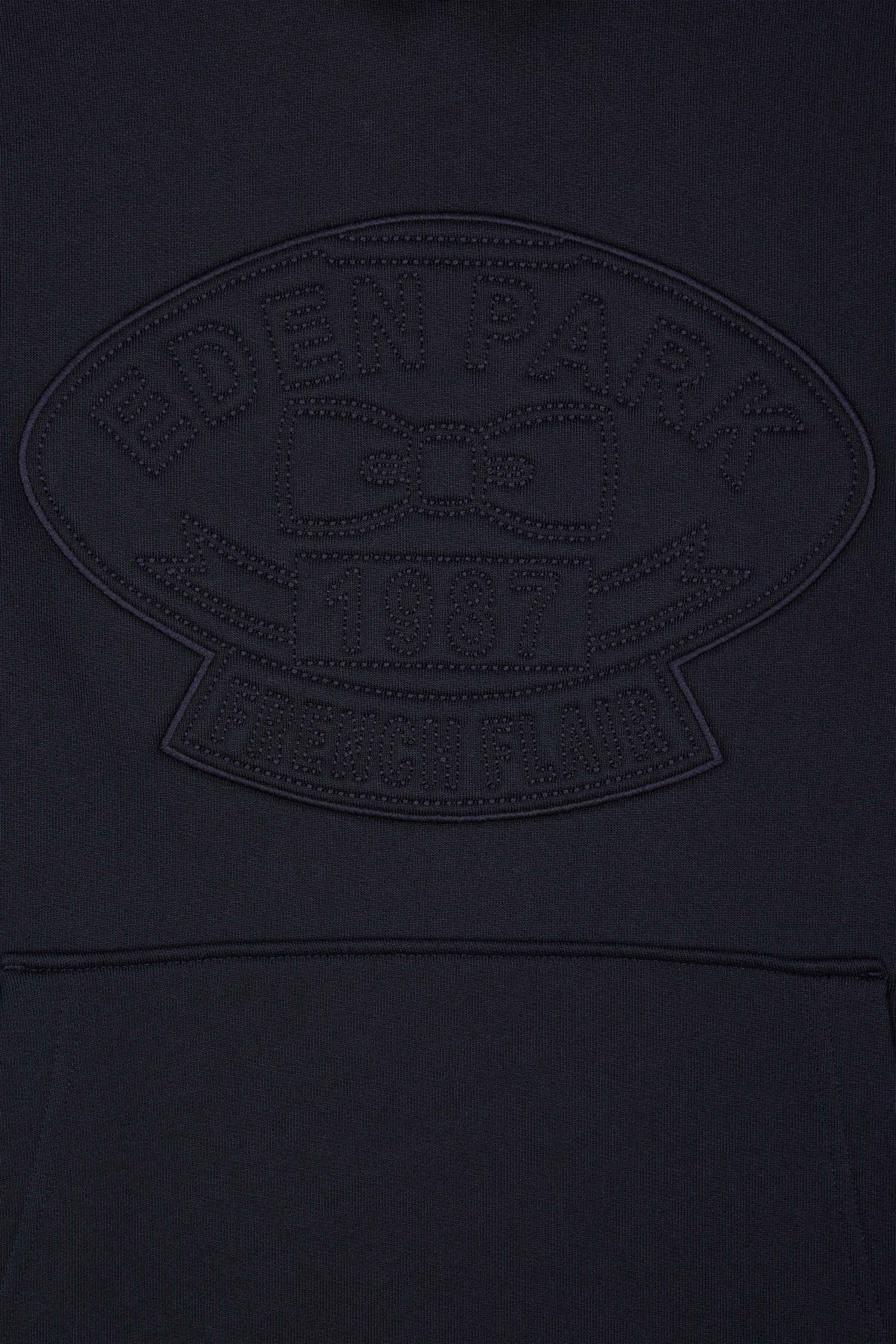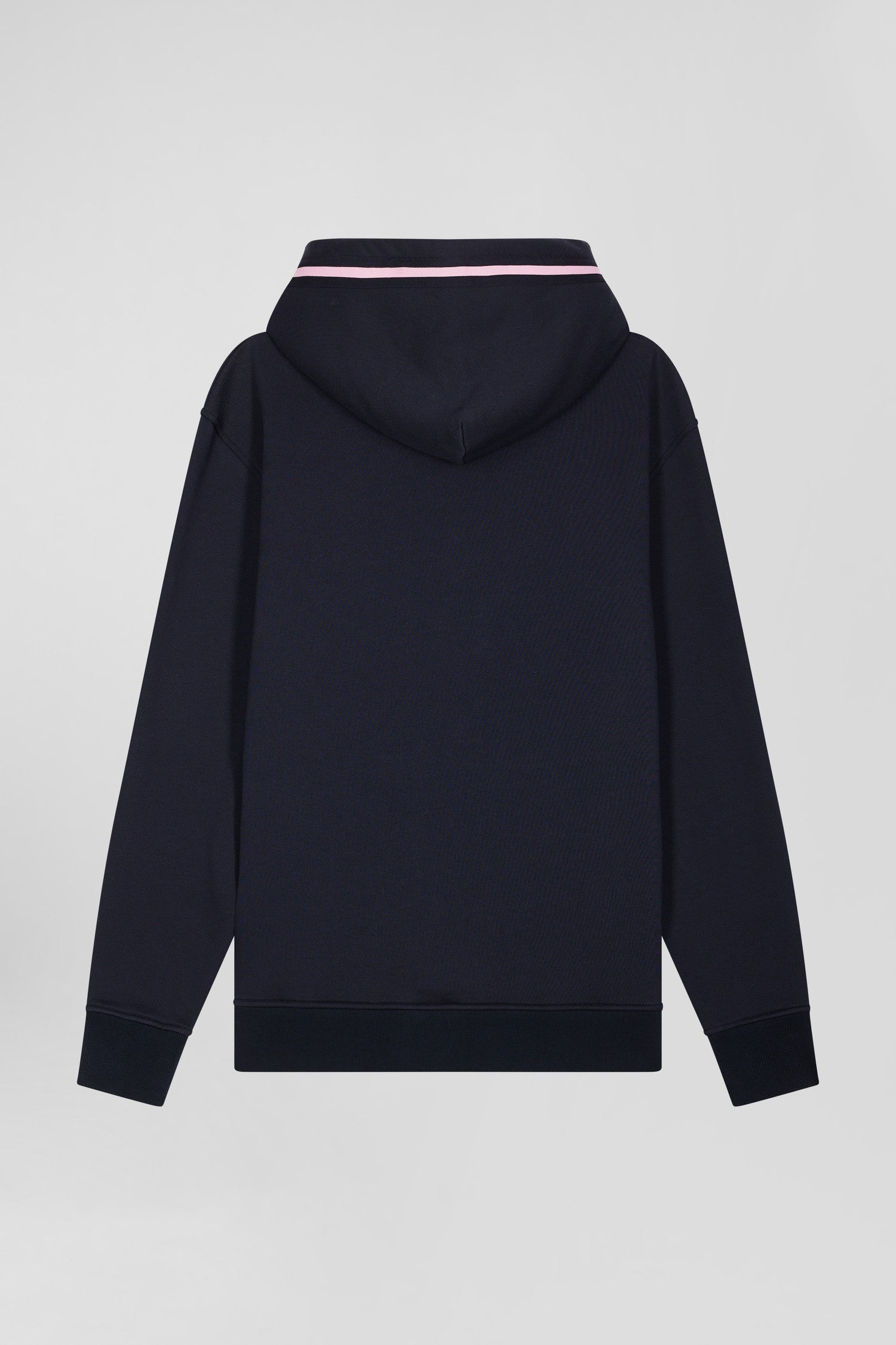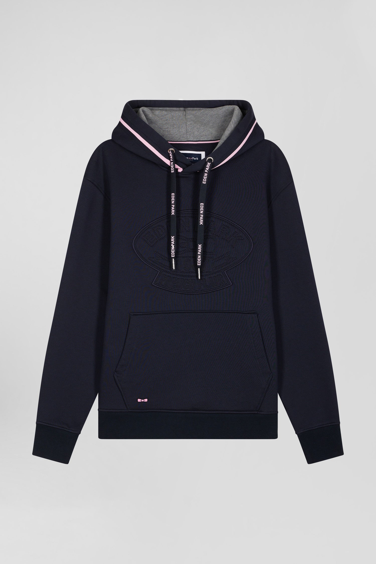 Sweatshirt à capuche en coton mélangé bleu marine broderie matelassée coupe Relaxed