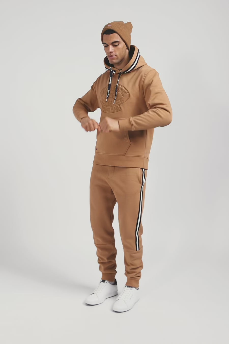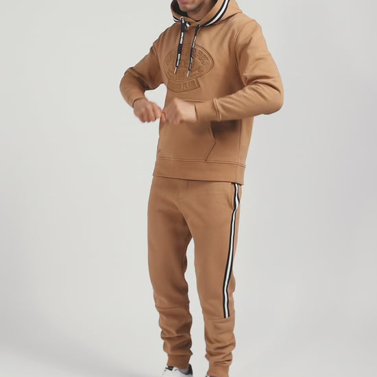 Pantalon jogging en coton mélangé camel galon rayé coupe Regular