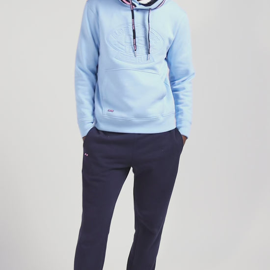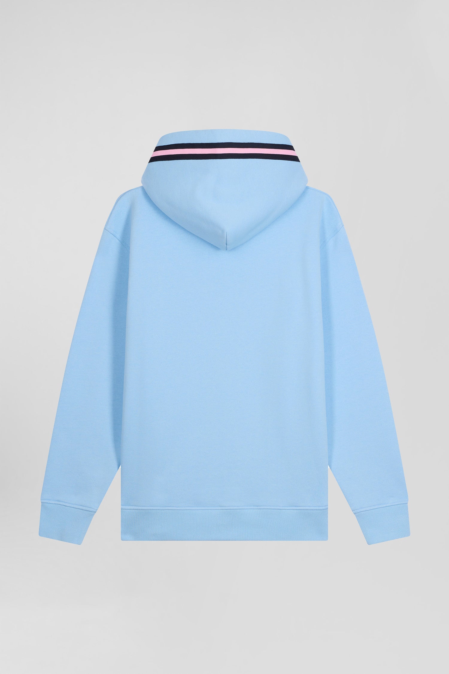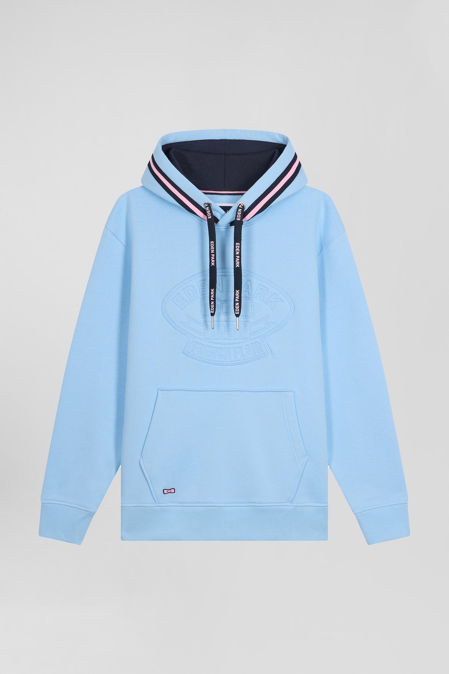 Invitez la douceur et le style dans votre vestiaire automne-hiver avec ce sweatshirt à capuche en molleton gratté. Il arbore une broderie matelassée à l’avant et une poche kangourou pratique. Un ruban tricoté marine et rose souligne élégamment sa capuche, tandis que les cordons siglés aux finitions métalliques ajoutent une touche de distinction. Les bandes de propreté tricolores reflètent un savoir-faire attentionné, pour un confort haut de gamme et une allure sportive-chic.