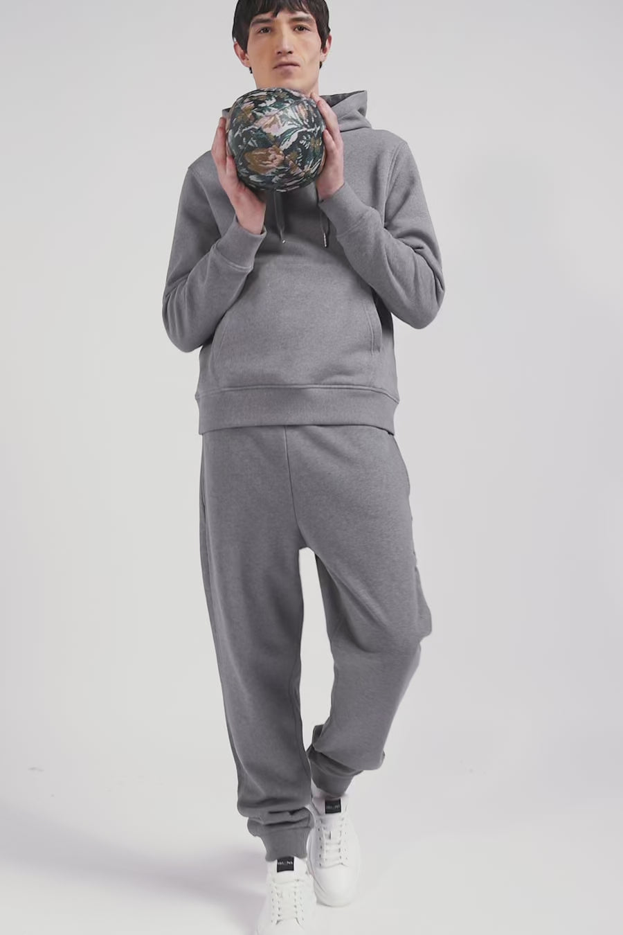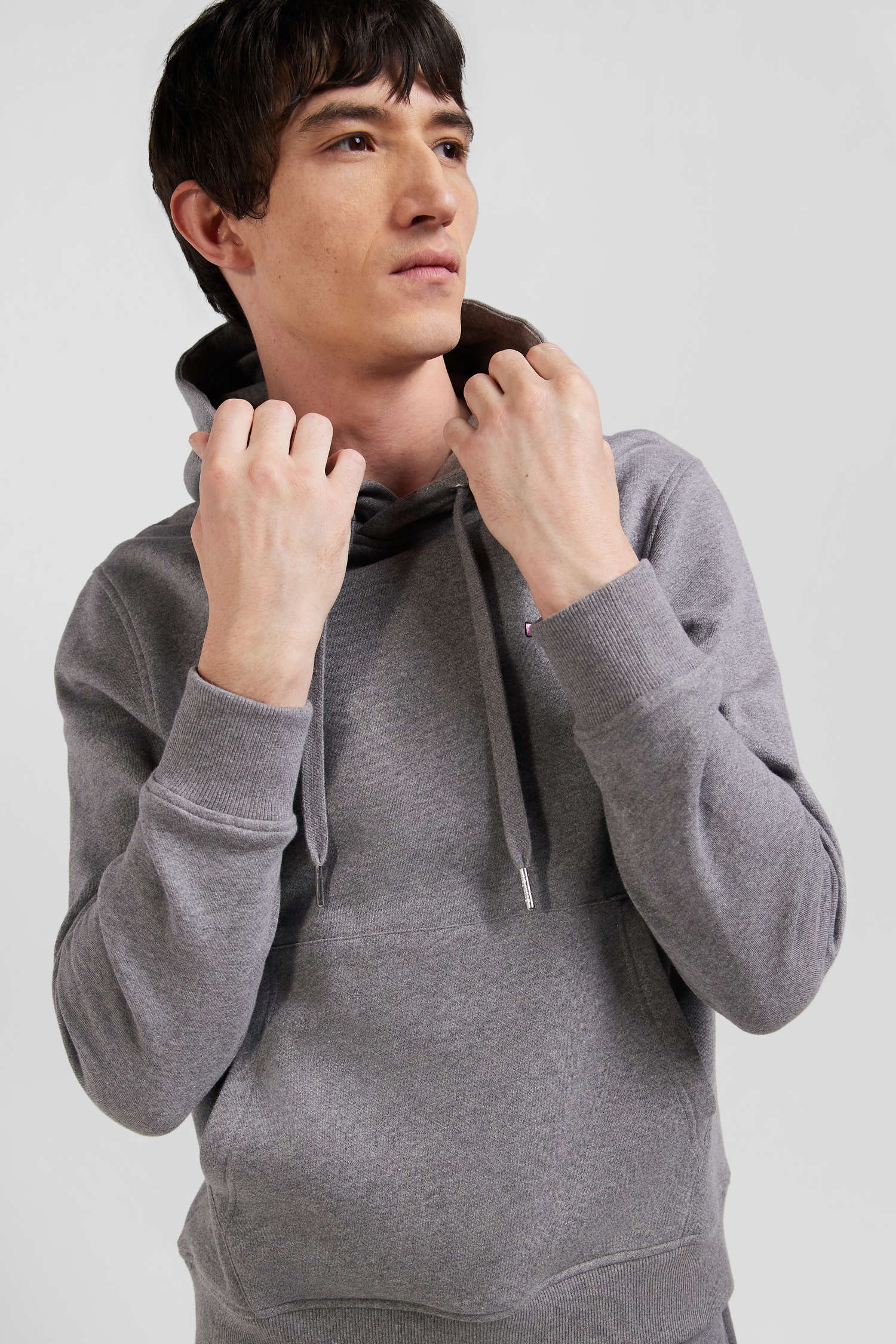 Sweatshirt à capuche en molleton coton gris coupe Regular