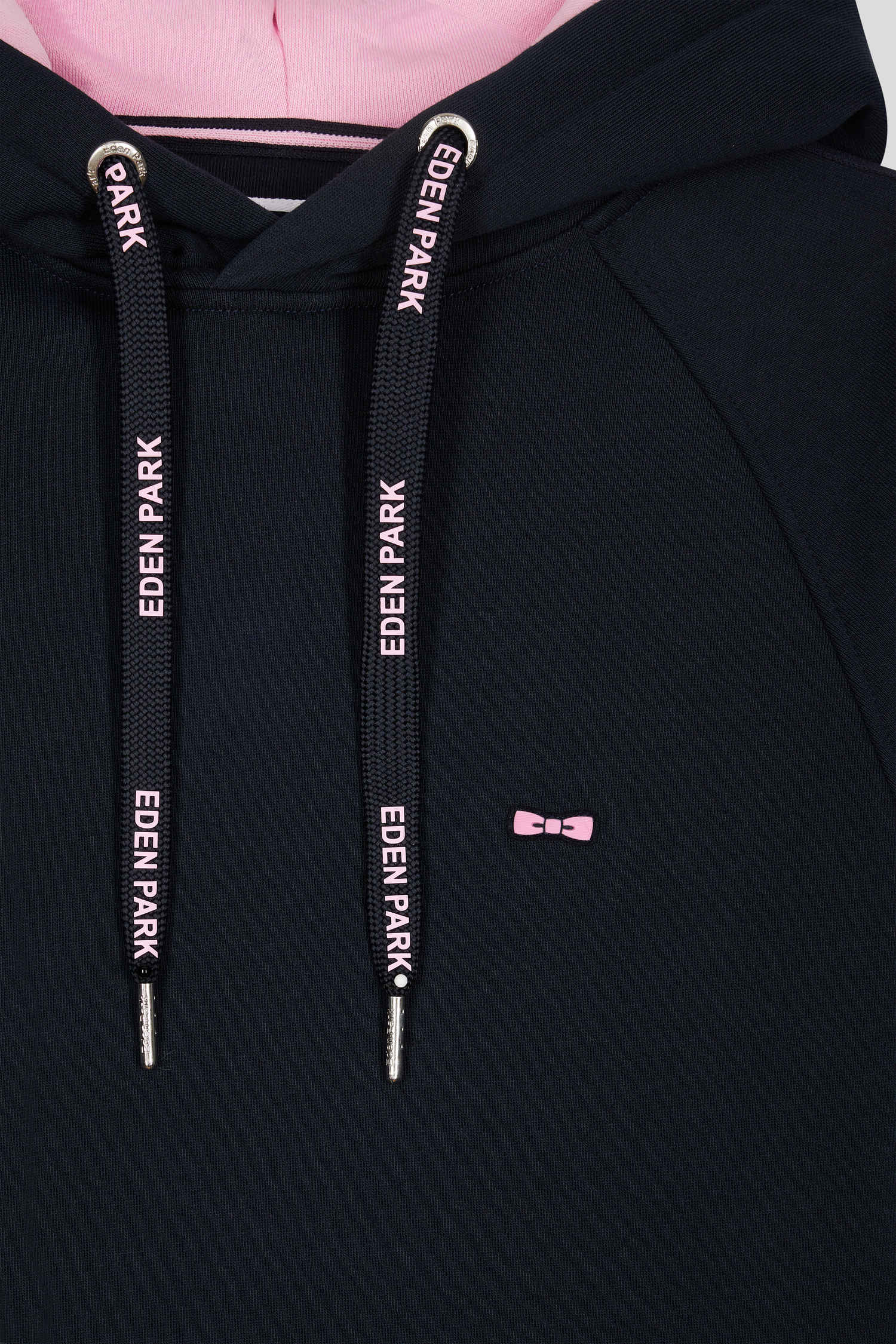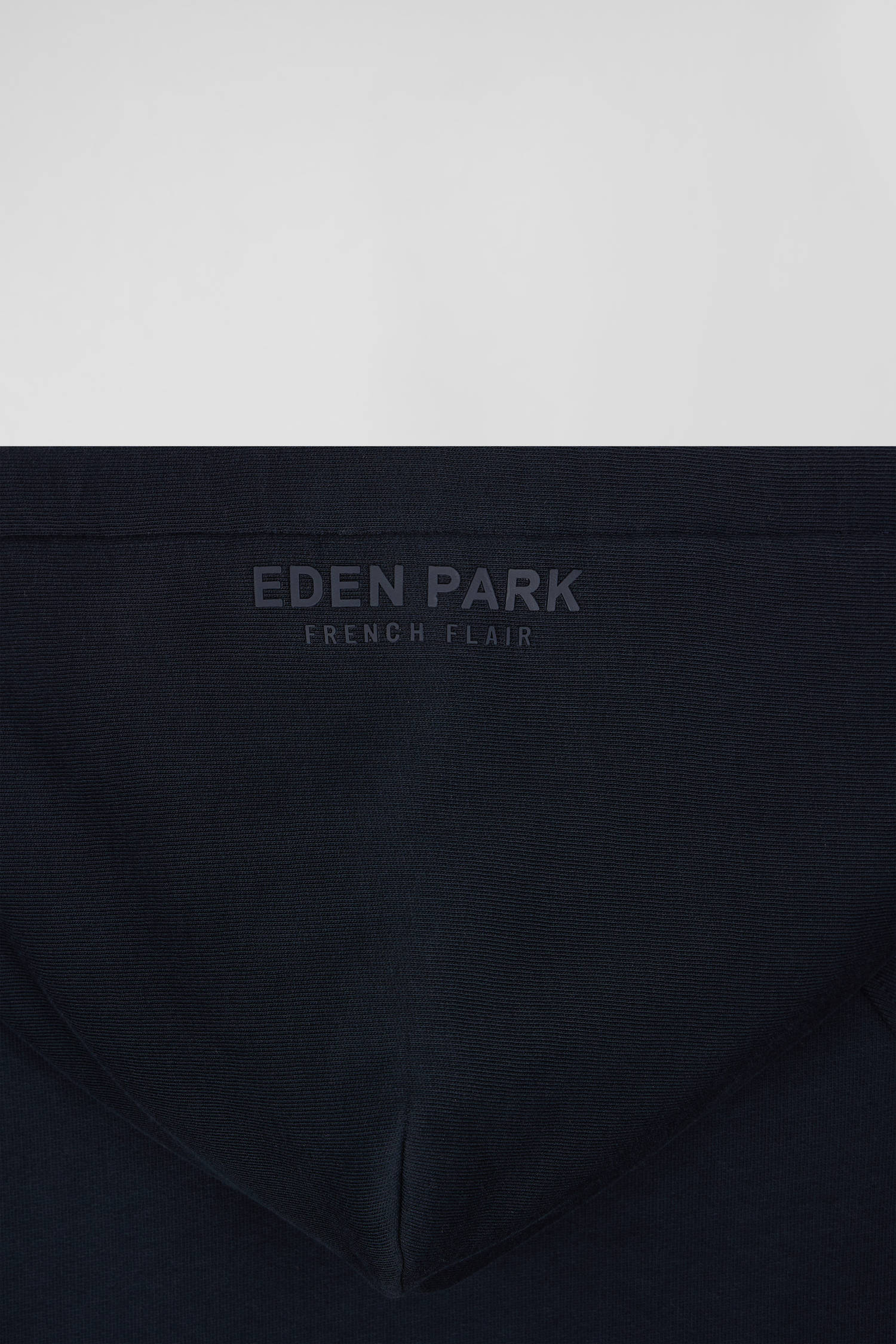 Conçu en doux molleton doux, ce sweatshirt à capuche propose un style graphique mis en valeur par ses cordons de serrage siglés Eden Park et le dos de sa capuche portant notre devise French Flair, invitation à s'amuser avec les codes de l'élégance décontractée. Ses finitions soignées apportent une touche d'élégance discrète à ce classique sportif réinventé.