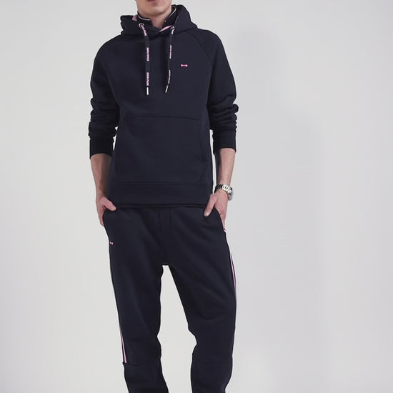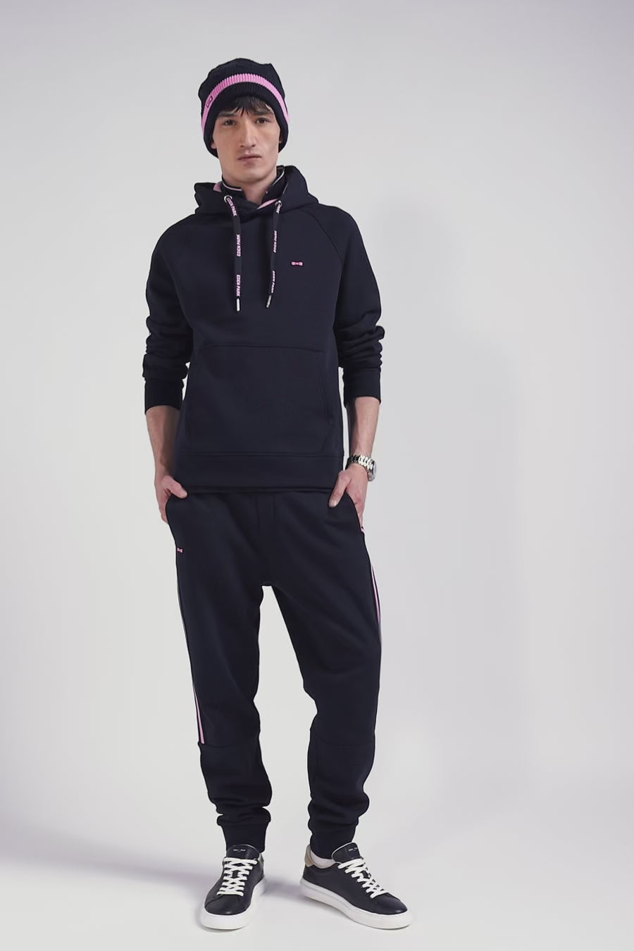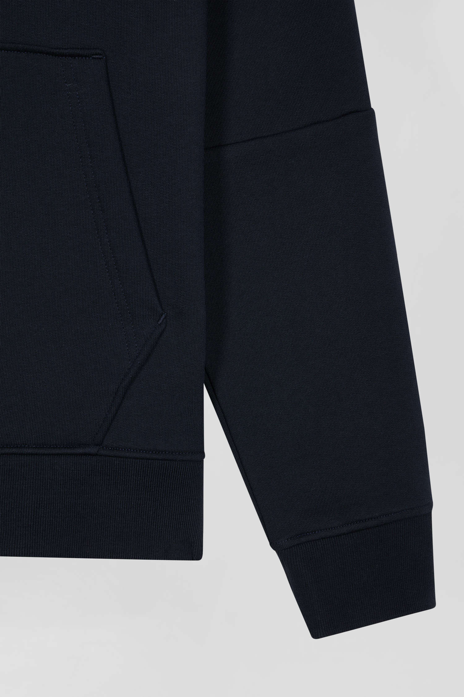 Sweatshirt à capuche en molleton marine cordons de serrage siglés coupe Relaxed