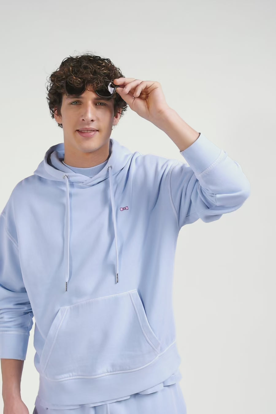 Sweatshirt à capuche unisexe en molleton coton ciel surteint coupe Oversized