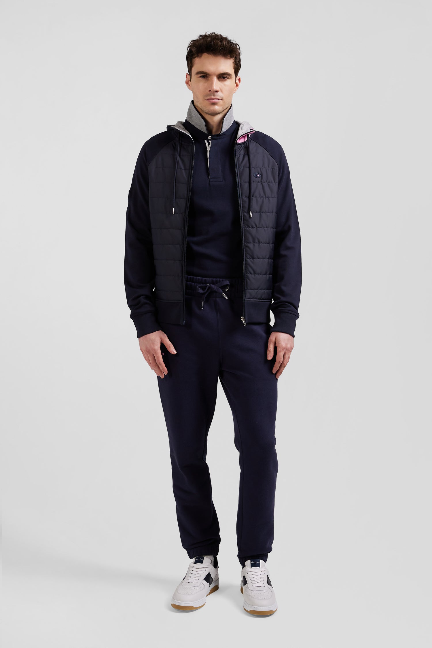 Adoptez une tenue polyvalente avec ce modèle hybride, mi-sweatshirt, mi-blouson de mi-saison. Son coloris intemporel est allié à une parmenture matelassée évoquant une doudoune légère, parfaite pour l'arrivée de l'automne. La capuche, ornée de rayures tricolores, fait écho à l'élégance française revue par Eden Park, tandis que le badge XV de France rappelle fièrement la passion de notre Maison pour le rugby. Idéal pour une allure sportive ou une sortie décontractée, ce sweatshirt à capuche est l'incarnation du chic athlétique.