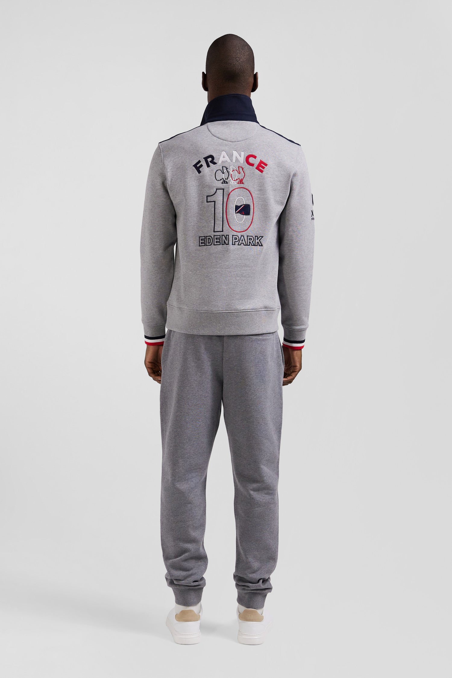 Sweatshirt col maillot en coton gris chiné broderie XV de France coupe Regular