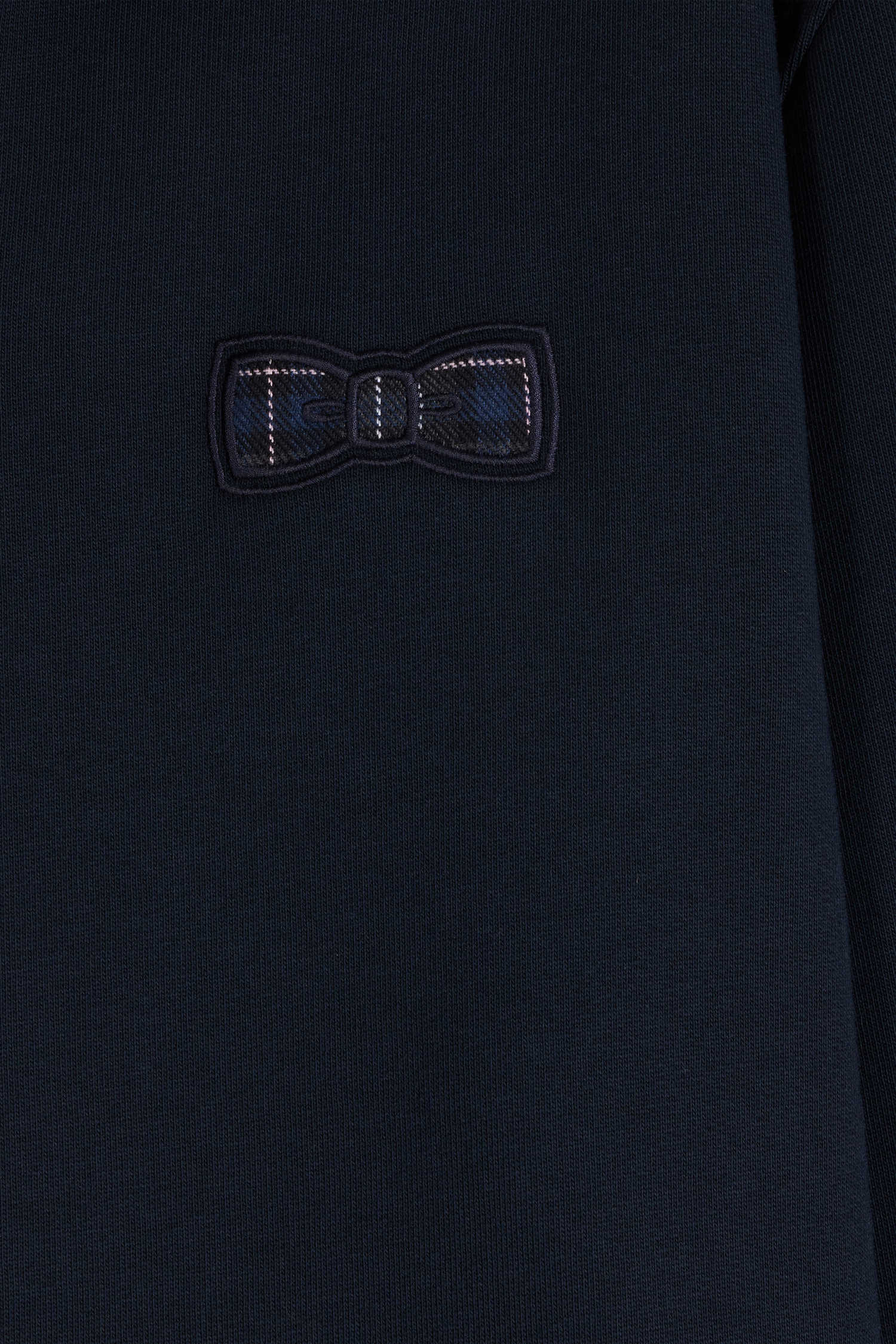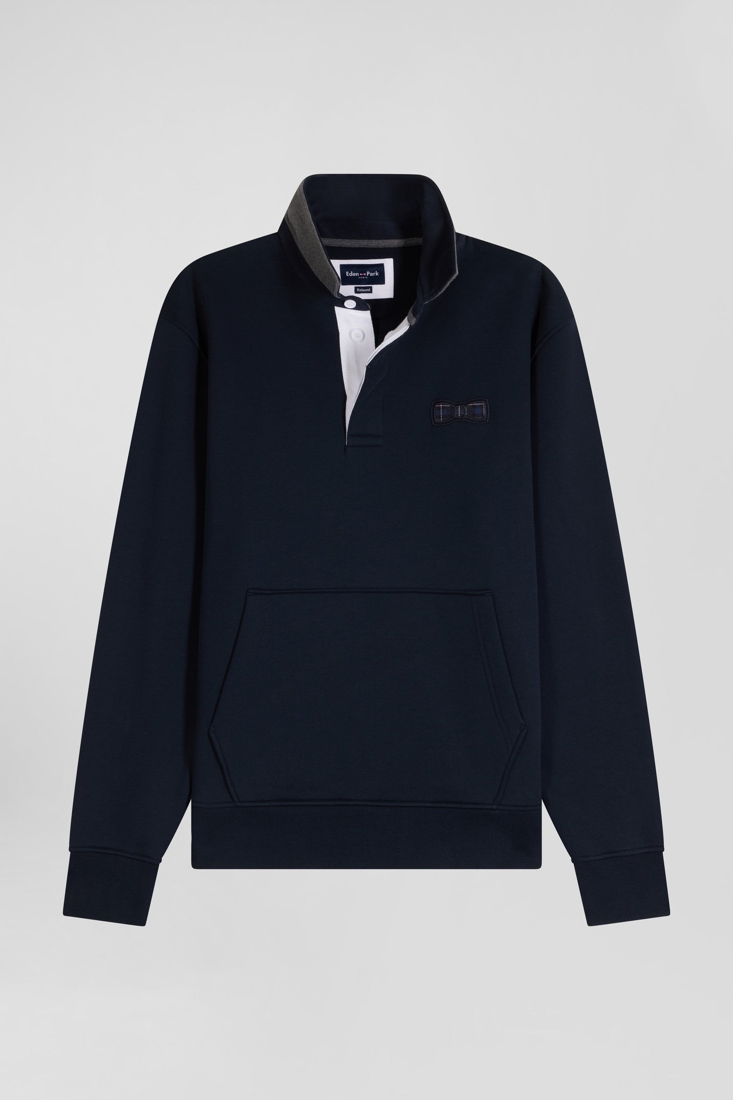 Sweatshirt col maillot en coton mélangé bleu marine coupe Relaxed application tissus carreaux