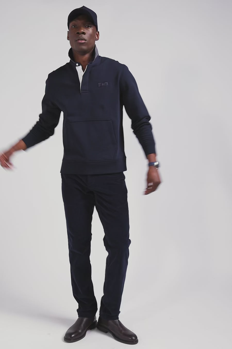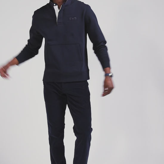 Ce sweatshirt col maillot en molleton gratté, inspiré par le rugby, présente un col doublé de bords-côtes pour un confort accru. Orné de broderies et agrémenté d'applications de tissu à carreaux provenant de chemises, ce sweatshirt original allie style et élégance.