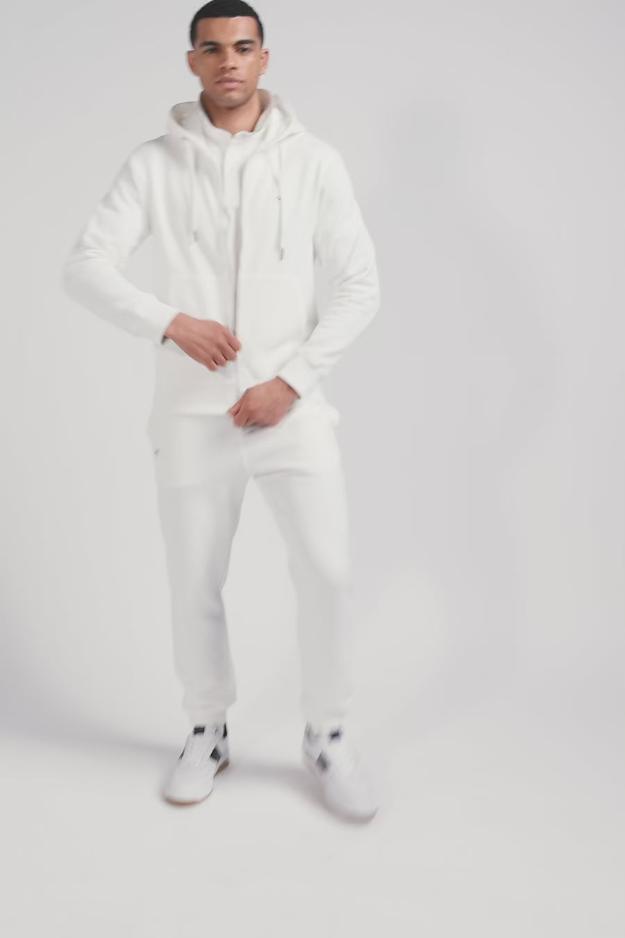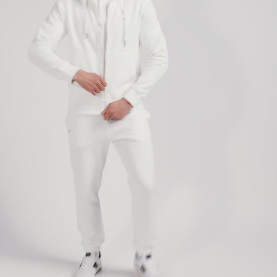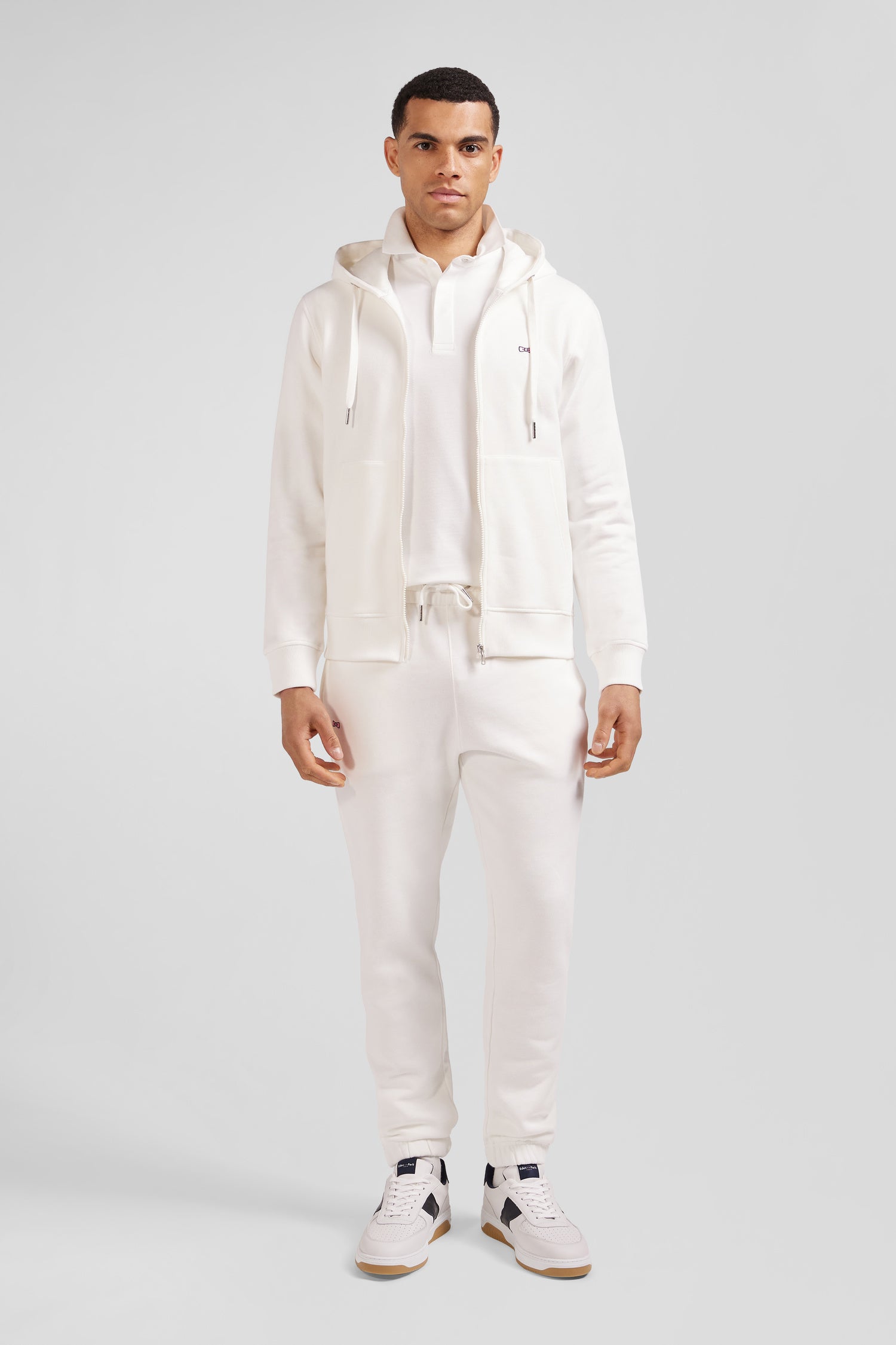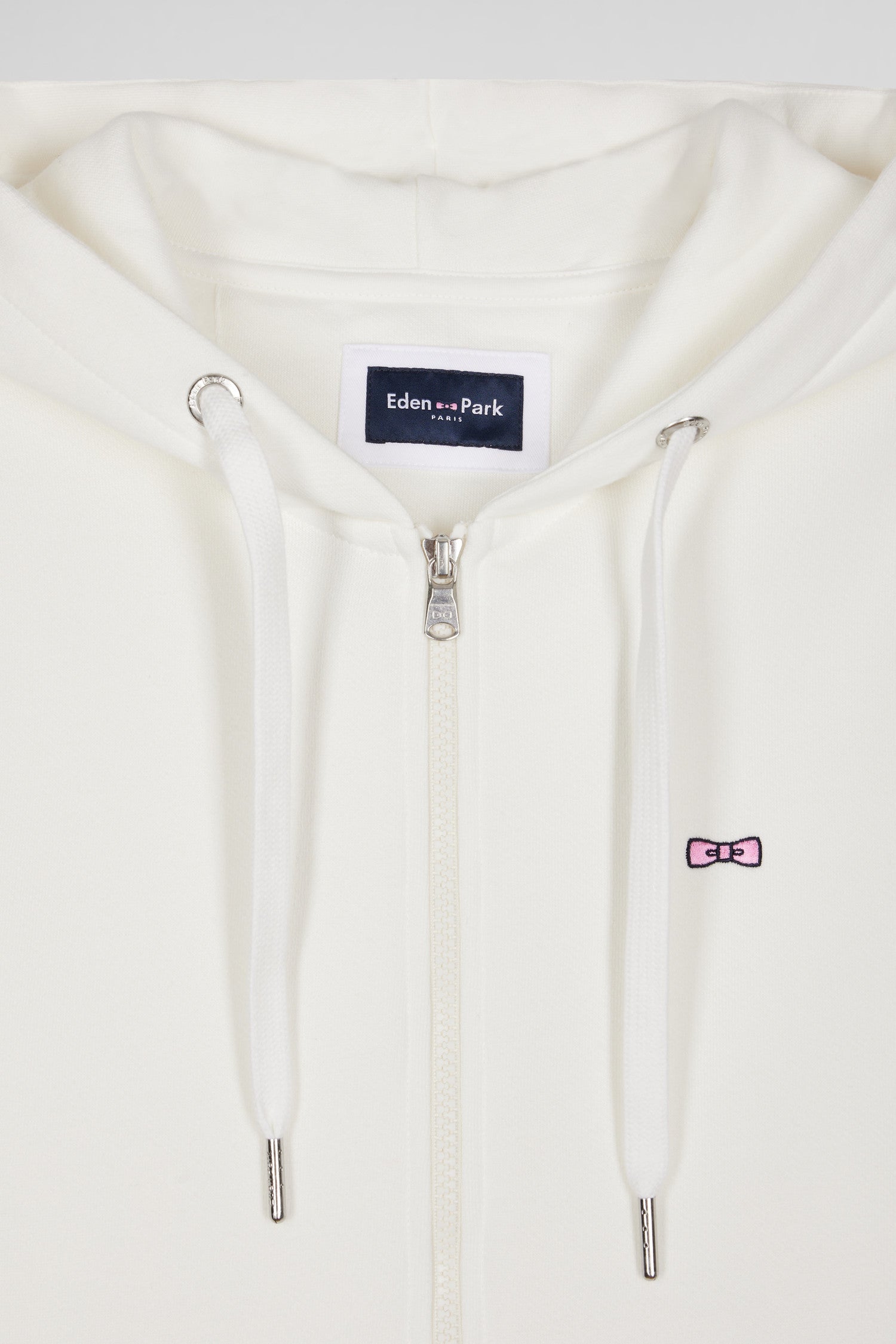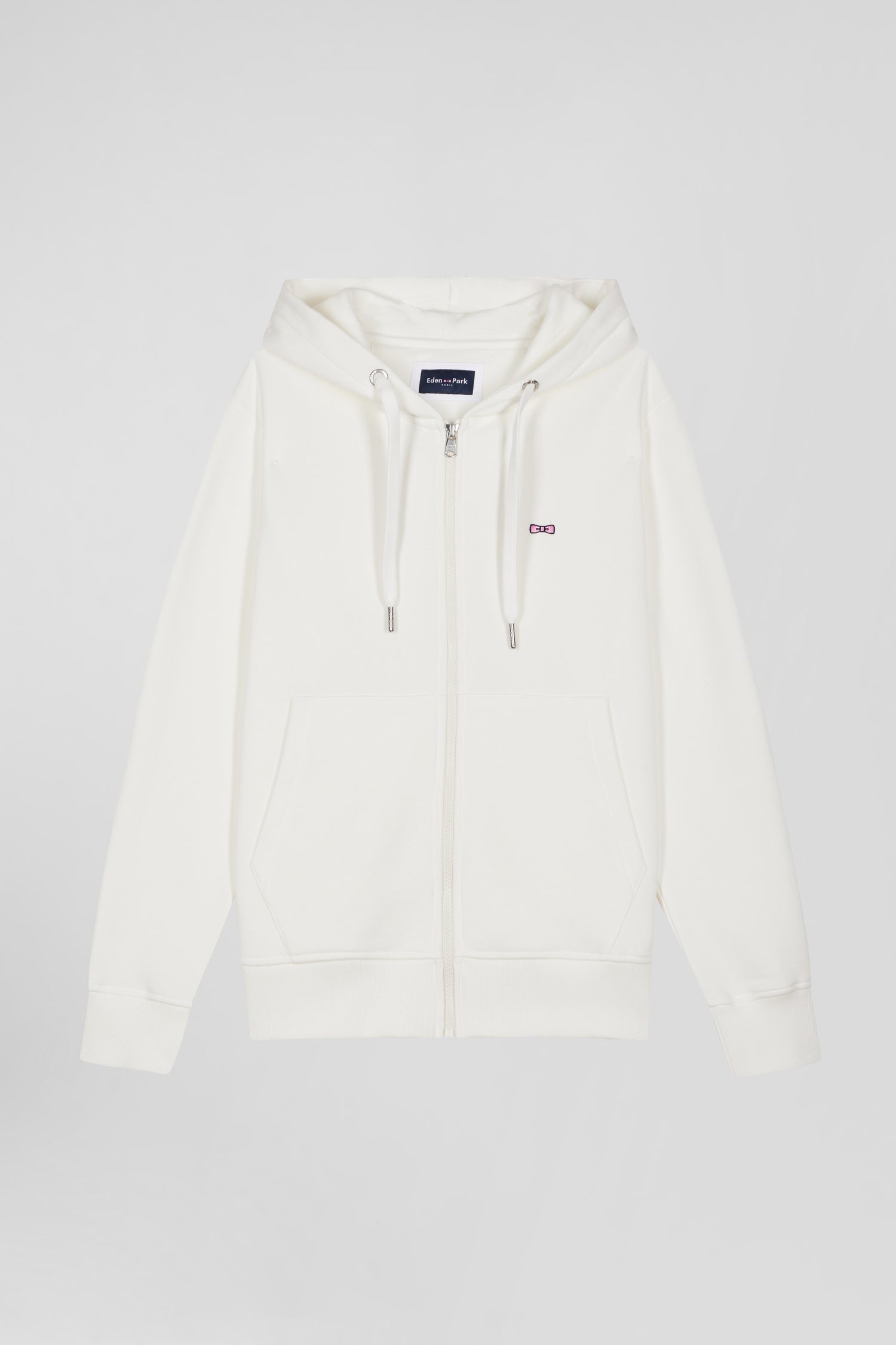 Sweatshirt zippé à capuche en molleton coton écru coupe Regular