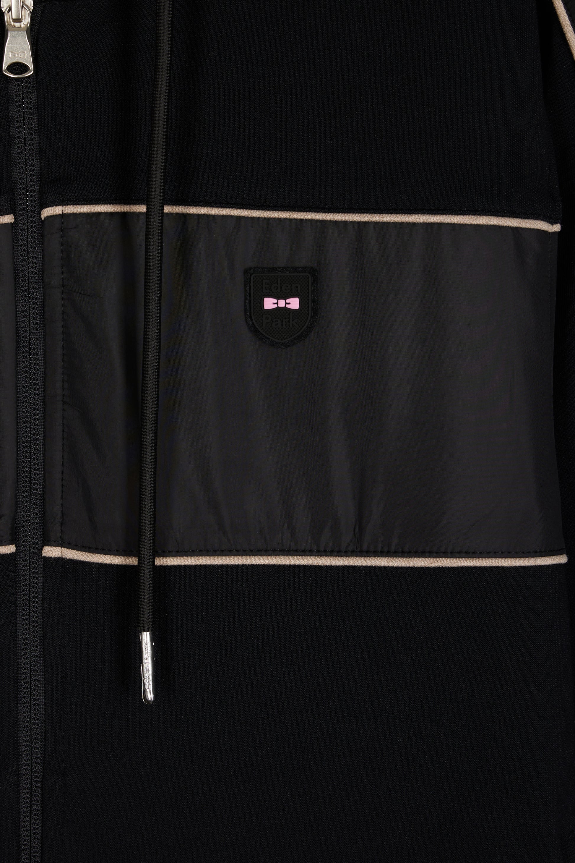 Sweatshirt zippé à capuche en molleton et nylon noir et beige