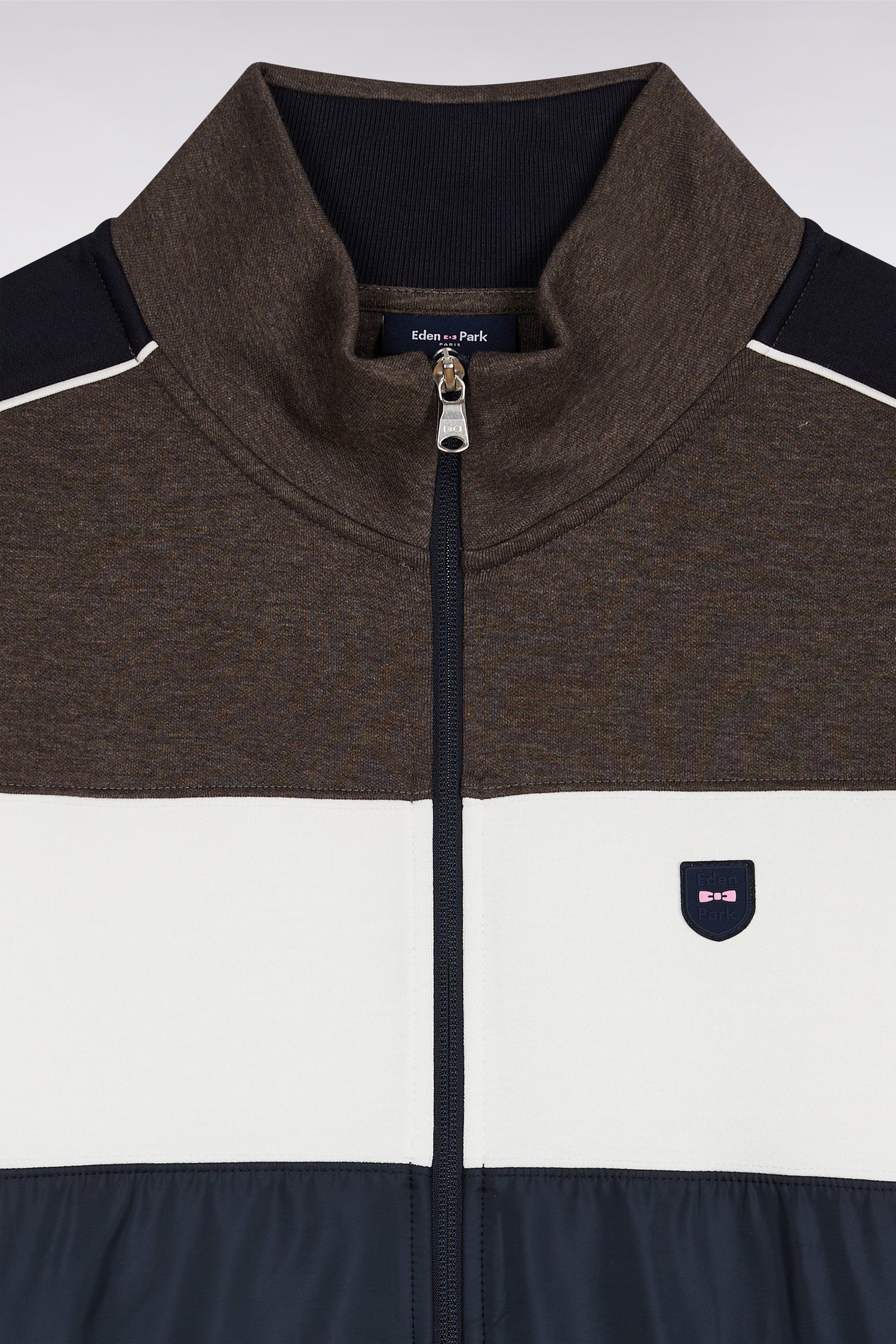 Sweatshirt zippé bimatière en nylon matelassé marron