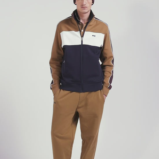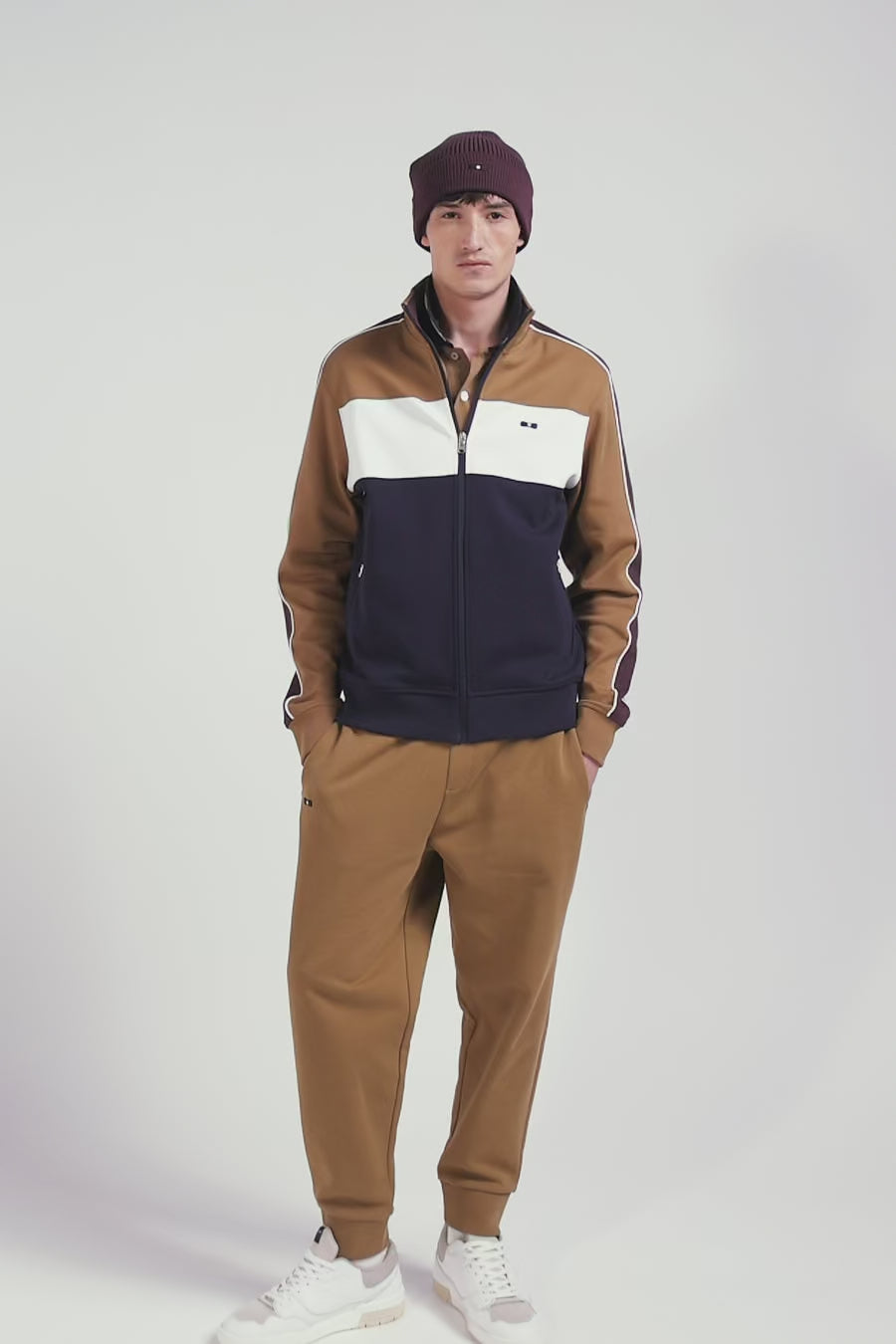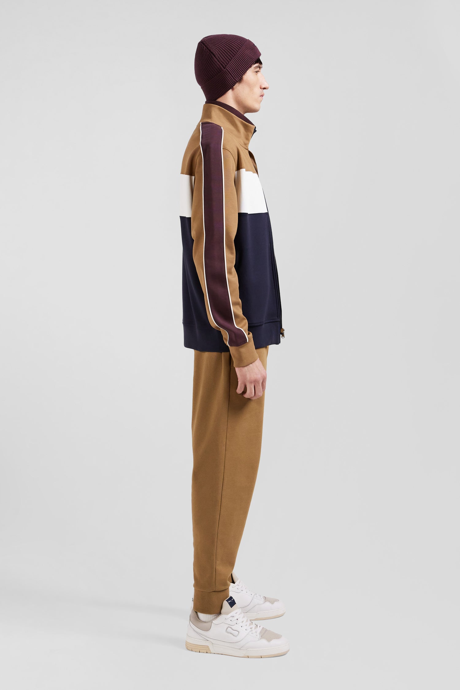 Sweatshirt zippé colorblock en coton mélangé noisette coupe Regular