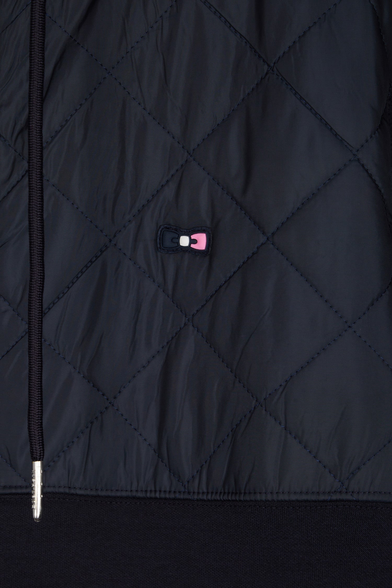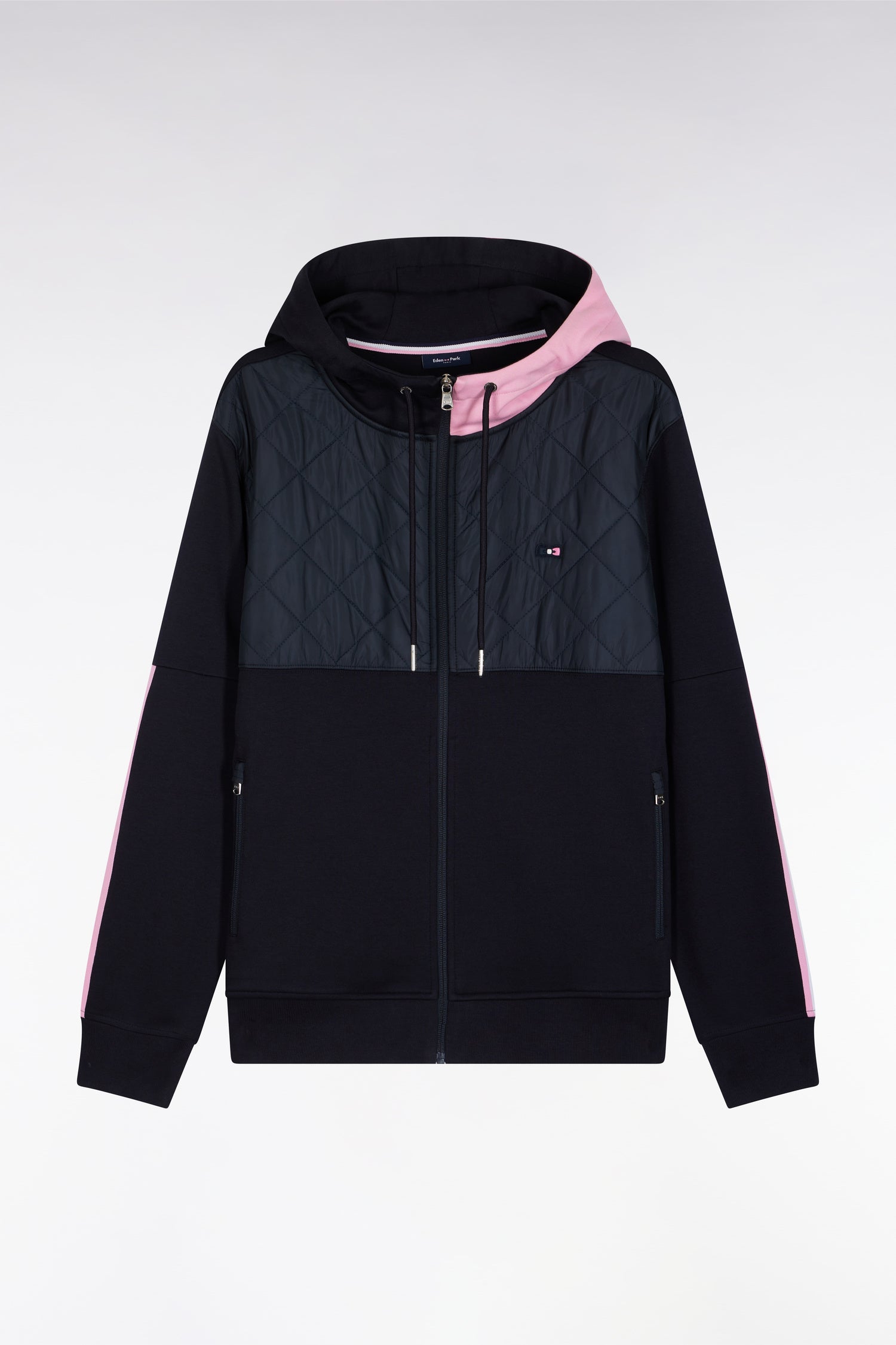 Sweatshirt zippé en interlock bimatière matelassé marine et rose