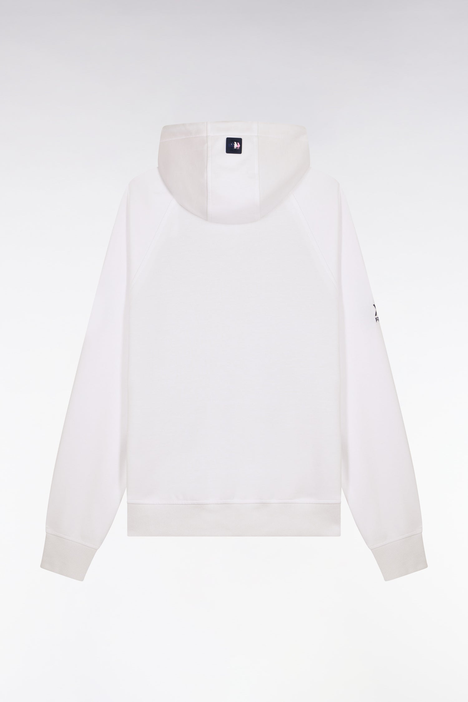 Sweatshirt zippé XV de France à capuche en molleton blanc à parmenture matelassée marine coupe regular