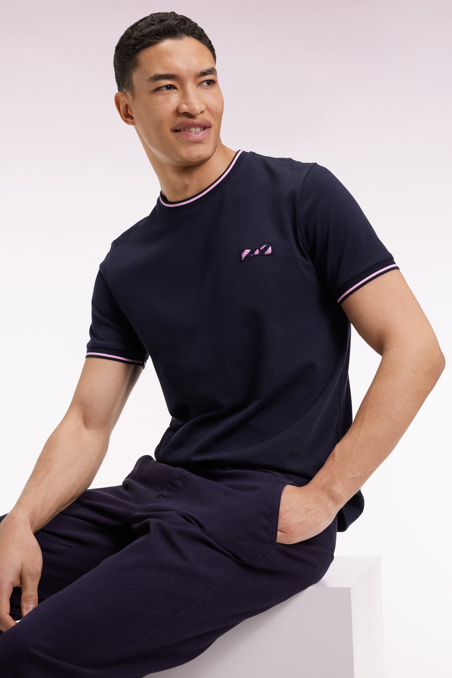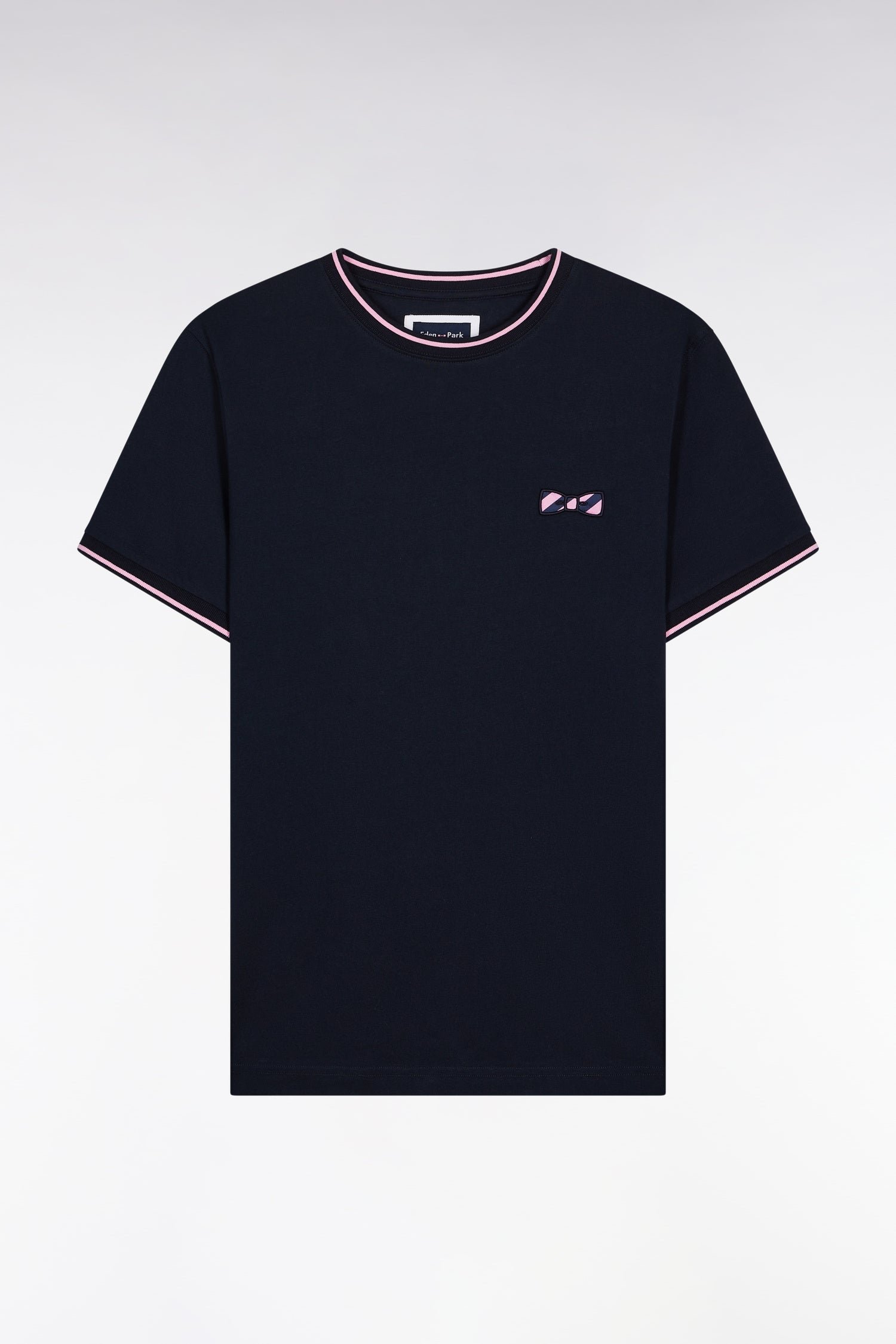 Confectionné dans un jersey doux, ce T-shirt mise sur un confort absolu sans compromis sur le style. Il offre un porté souple et agréable au quotidien, idéal pour vos week-ends ou moments de détente. Sur la poitrine, une large broderie nœud papillon cerclé confirme la signature Eden Park