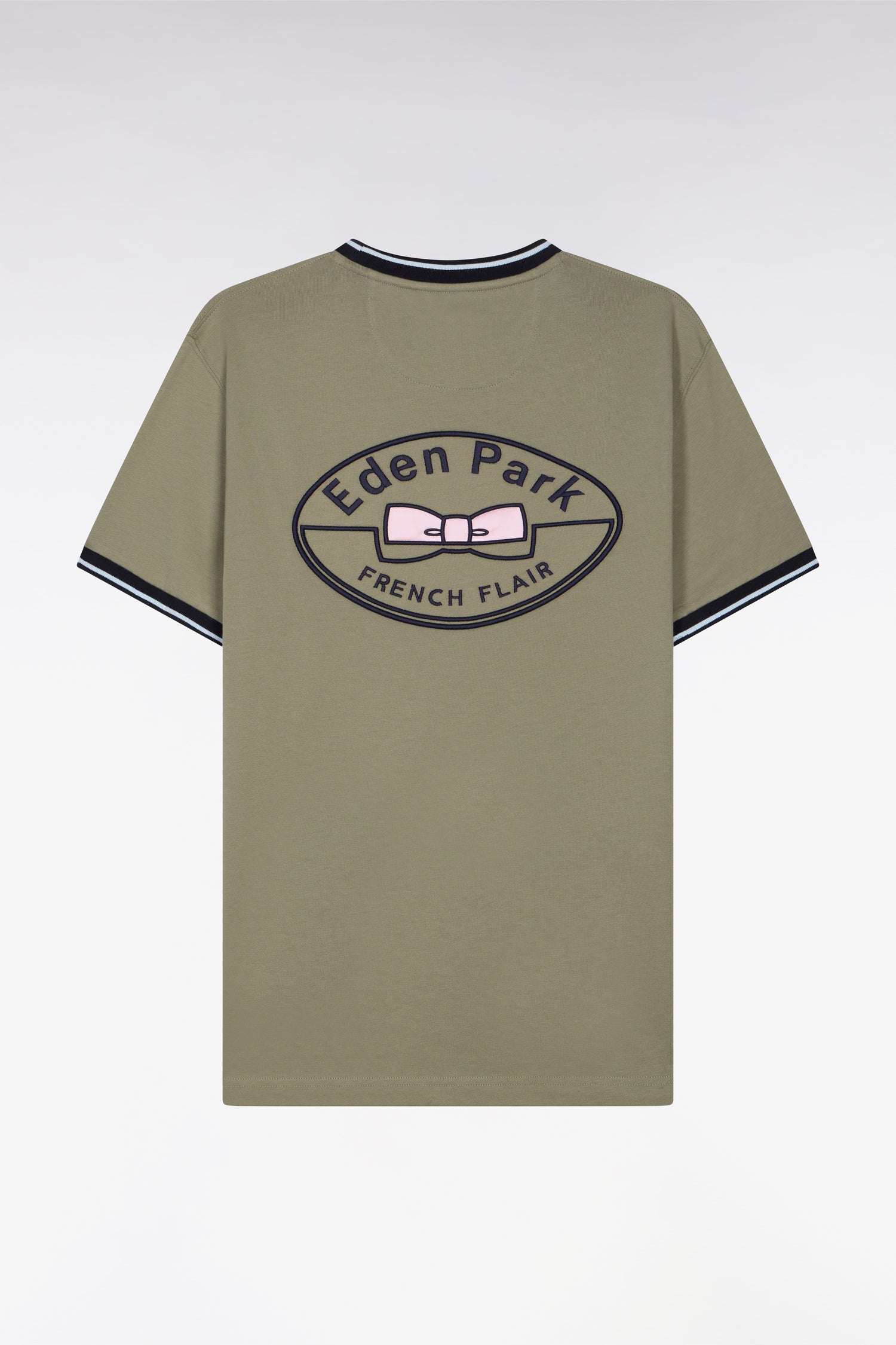 Ce T-shirt manches courtes pour homme adopte une esthétique sobre relevée par un motif emblématique : sa broderie dos Eden Park rehaussée par un luxueux tissu cravate imprimé. Sa coupe confortable et sa matière douce en font un T-shirt agréable à porter, parfait pour accompagner les silhouettes décontractées avec élégance. En beige ou en kaki, ce T-shirt brodé conserve ses bords-côtes contrastés animé d'un liseré pour une touche graphique et un tomber impeccable.