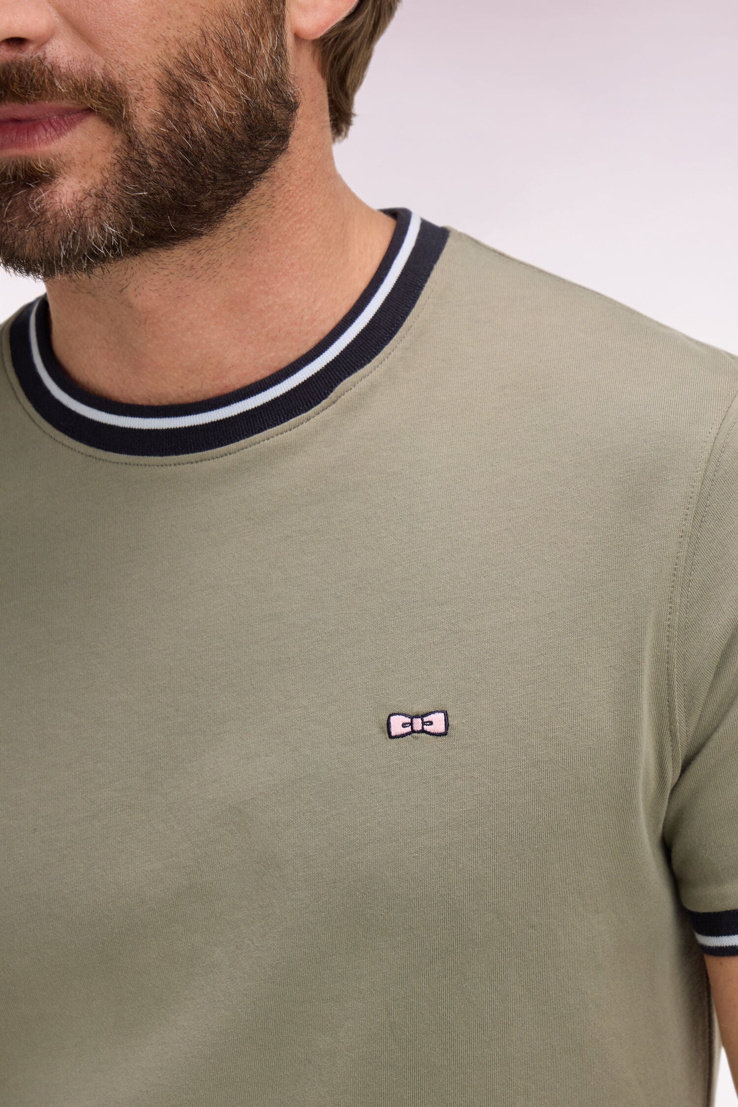 T-shirt à manches courtes en coton kaki brodé coupe regular