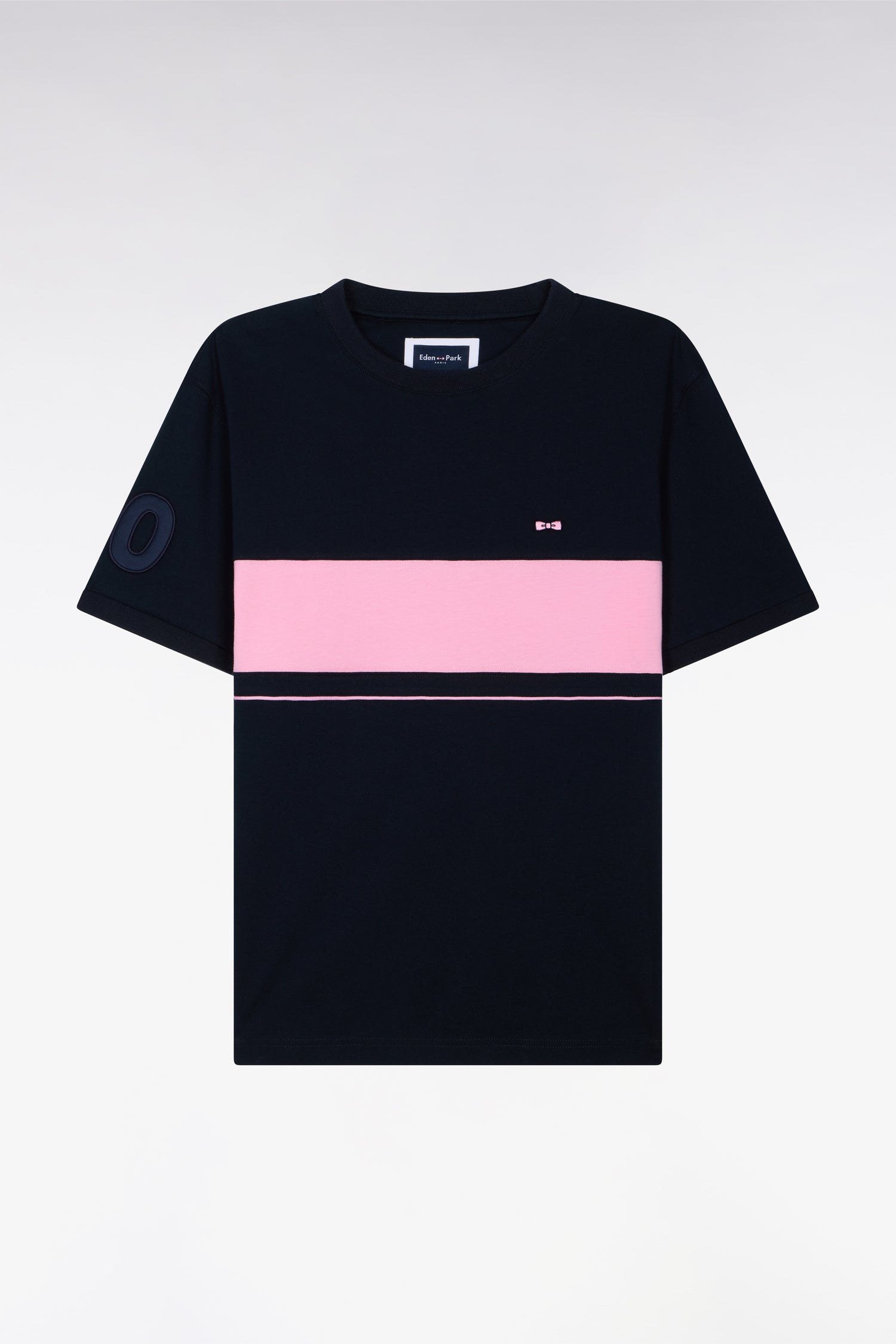 T-shirt à manches courtes en coton marine découpes roses coupe regular