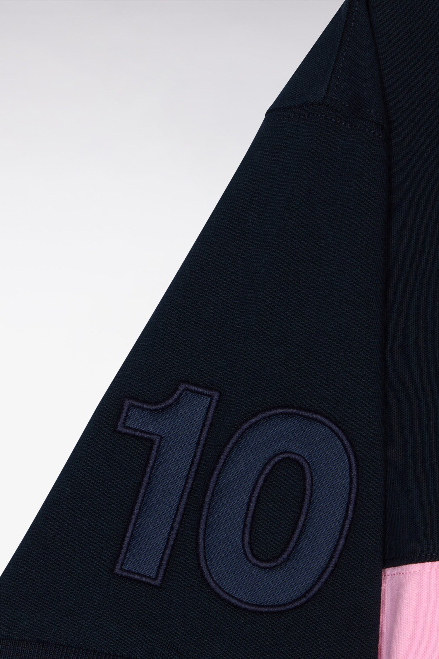 Ce modèle se distingue par des découpes roses contrastées qui structurent et dynamisent la silhouette. La broderie poitrine et la broderie 10 ajoutée à sa manche apporte à ce T-shirt homme une signature inimitable, fidèle à l’ADN sport-chic de la Maison. Un T-shirt graphique et polyvalent, idéal pour dynamiser les looks du quotidien.