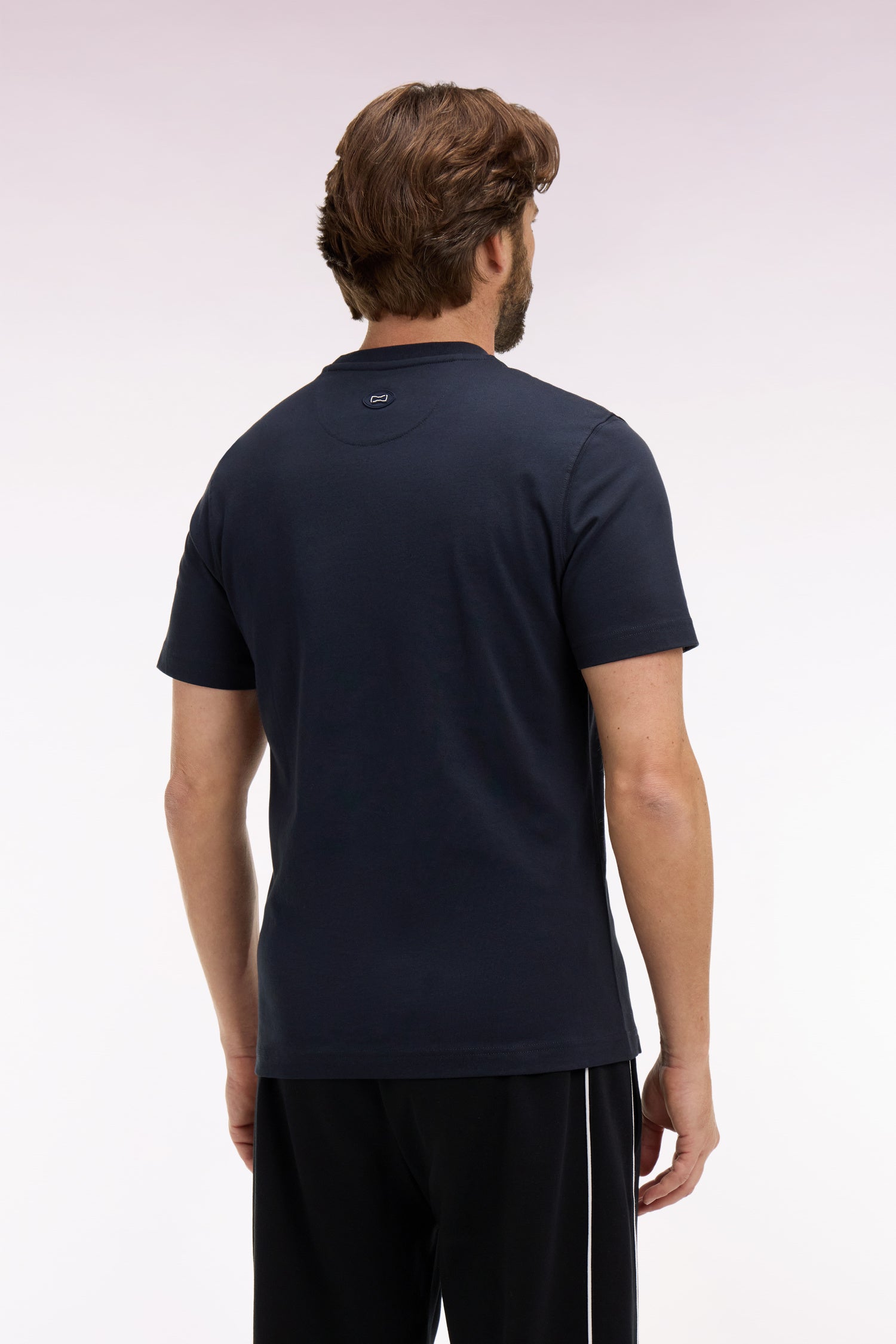 T-shirt à manches courtes en coton marine sérigraphié coupe regular