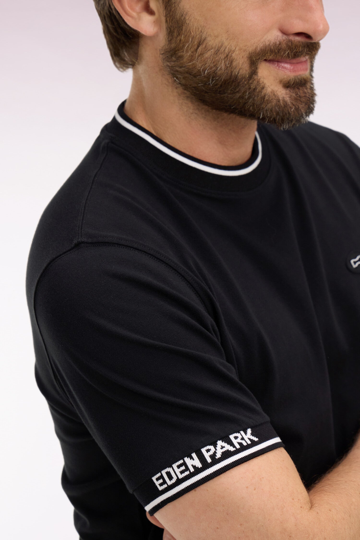 T-shirt à manches courtes en coton noir jacquard Eden Park coupe regular