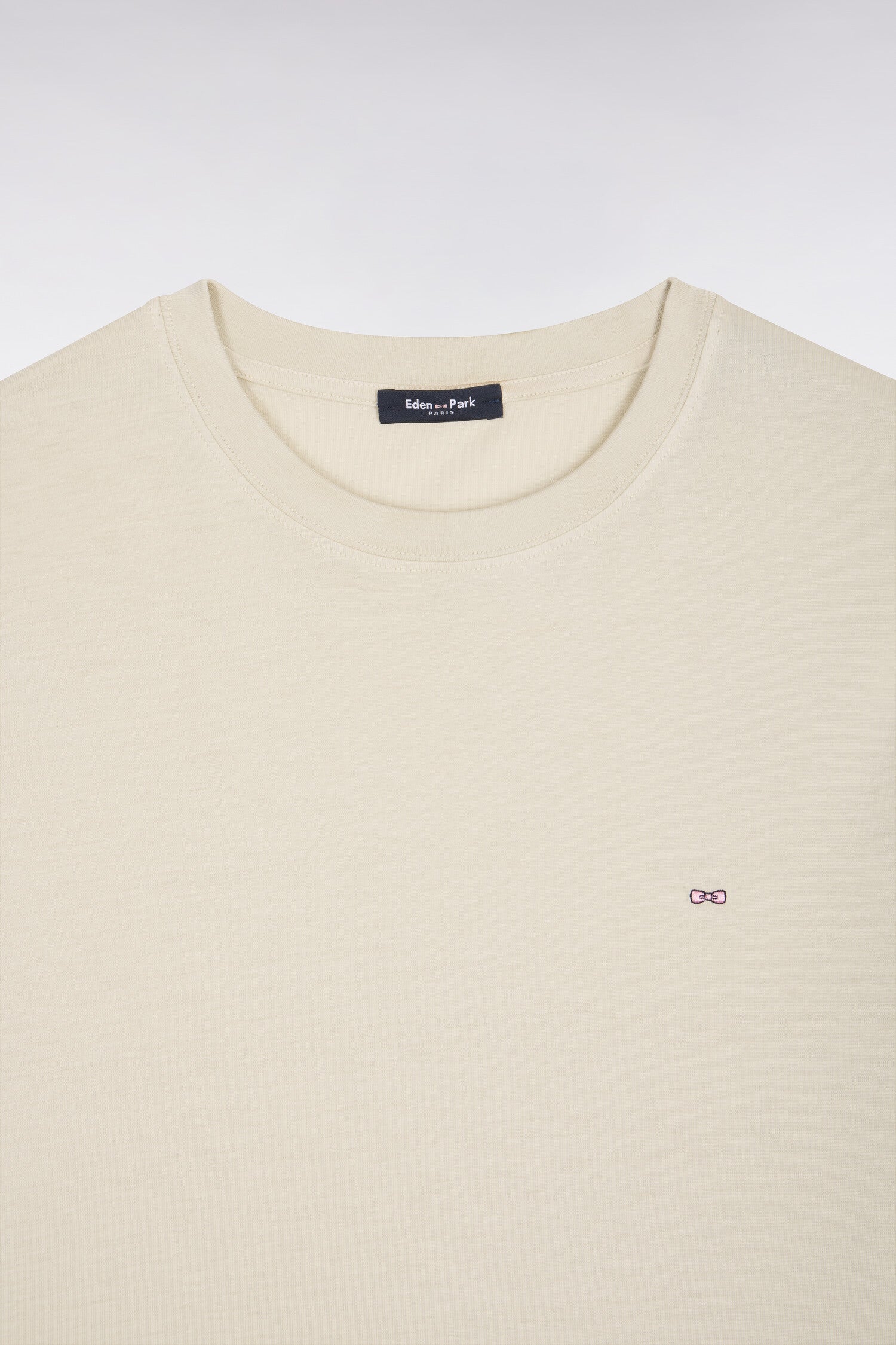 T-shirt à manches courtes en lyocell et coton beige coupe regular