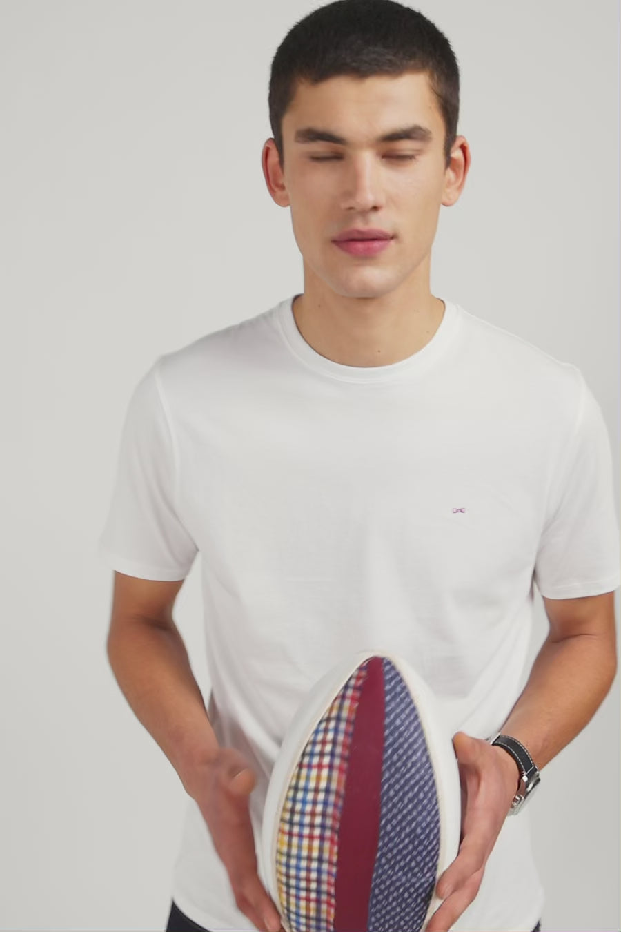 T-shirt blanc col rond à manches courtes