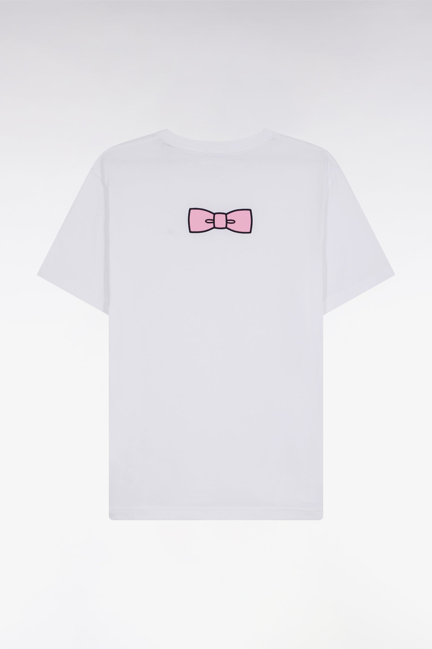 T-shirt en coton Pima blanc broderie dos coupe droite