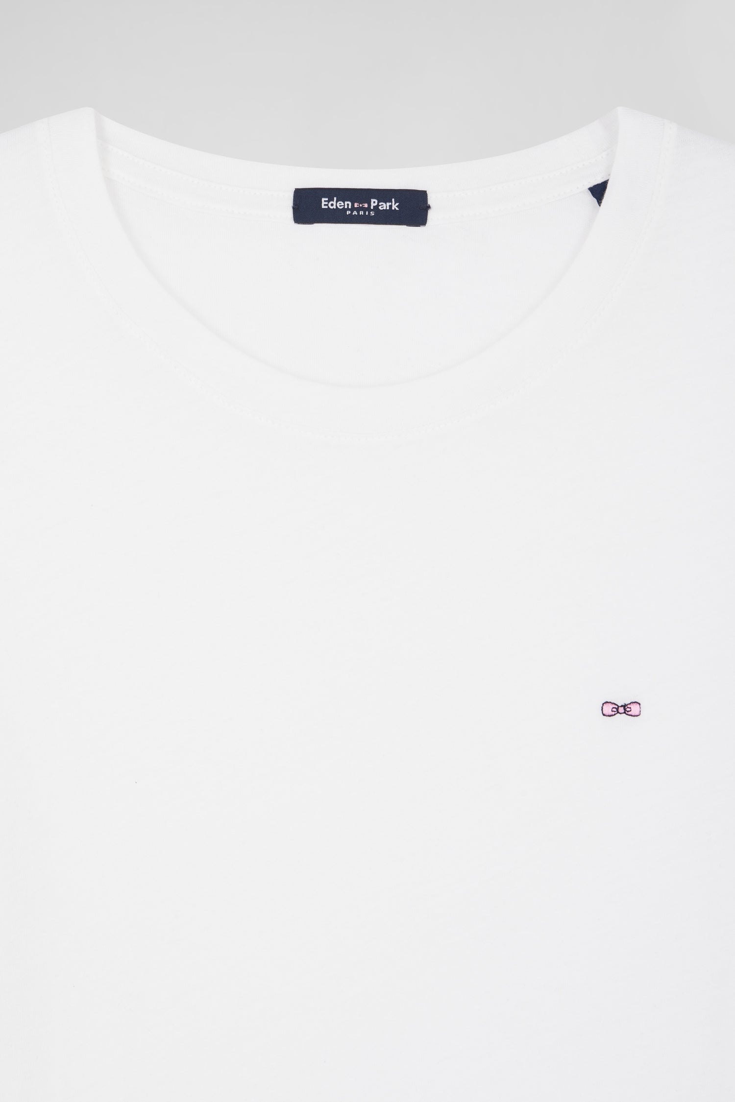 Notre T-shirt femme en pur coton est parfait pour un quotidien plus conscient et confortable. Avec sa coupe Regular droite et une broderie nœud papillon subtile, ce basique allie élégance et durabilité. Indémodable, ce T-shirt col rond se décline dans 4 coloris intemporels facile à assortir.