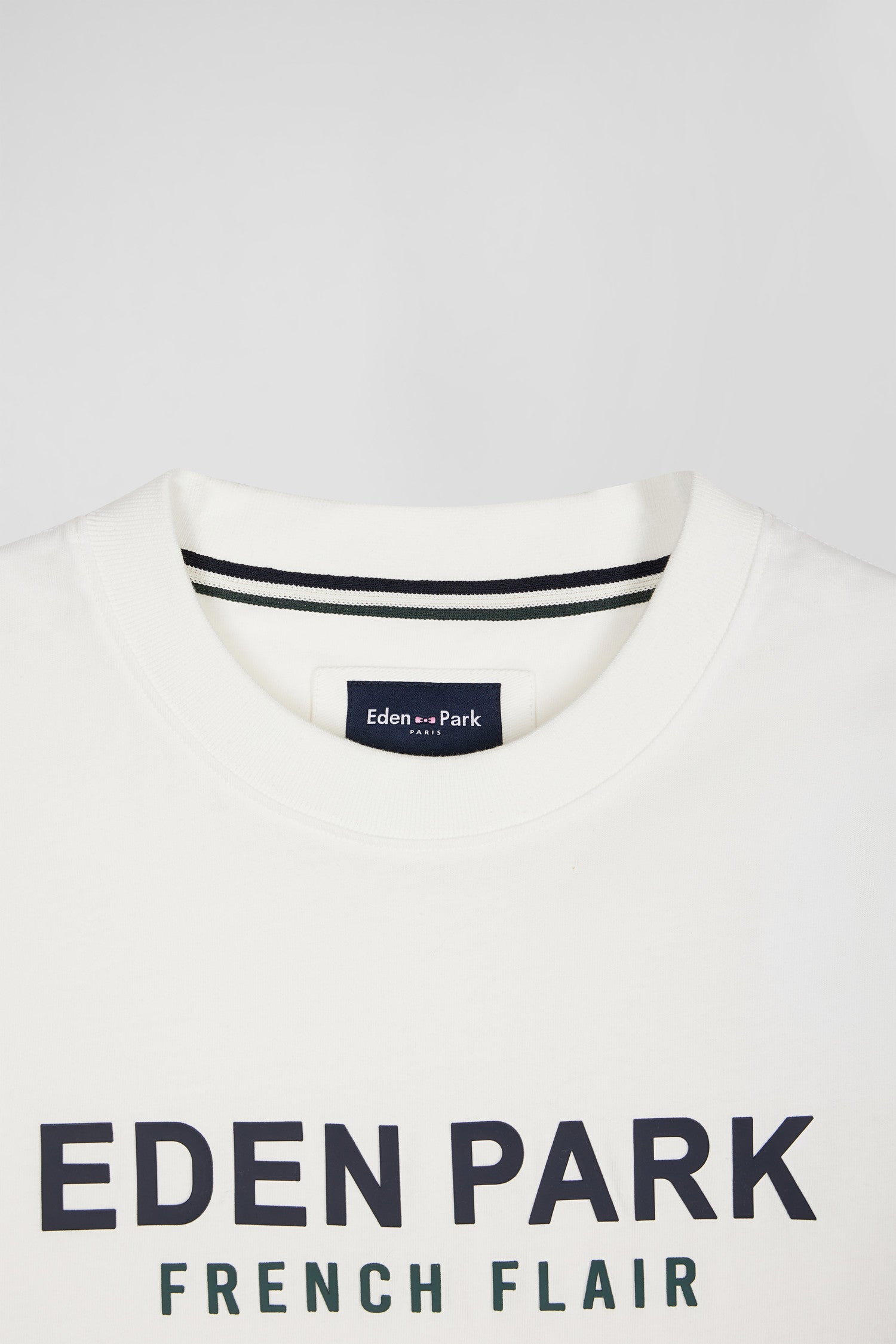 Dans sa coupe oversized ample et confortable, ce T-shirt pour homme en jersey de coton deviendra un essentiel de votre vestiaire décontracté. En gris ou en écru, il arbore fièrement le nom de notre Maison et notre devise French Flair en écho à l'élégance décalée d'Eden Park.