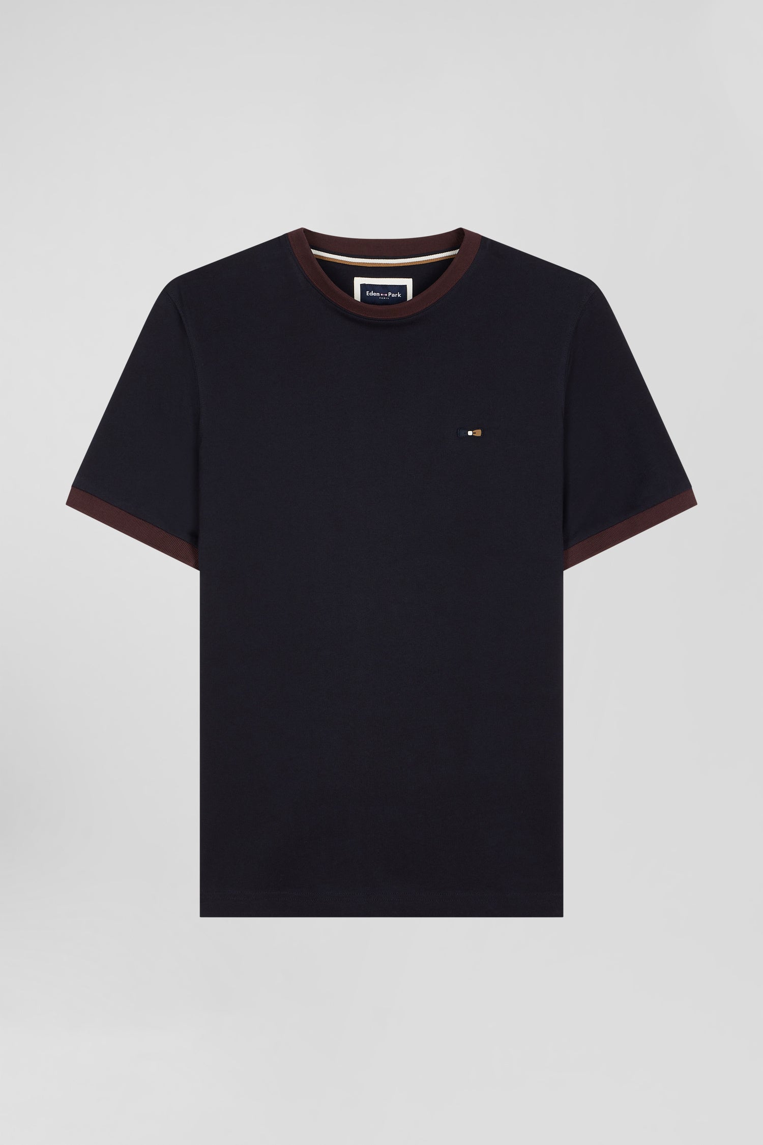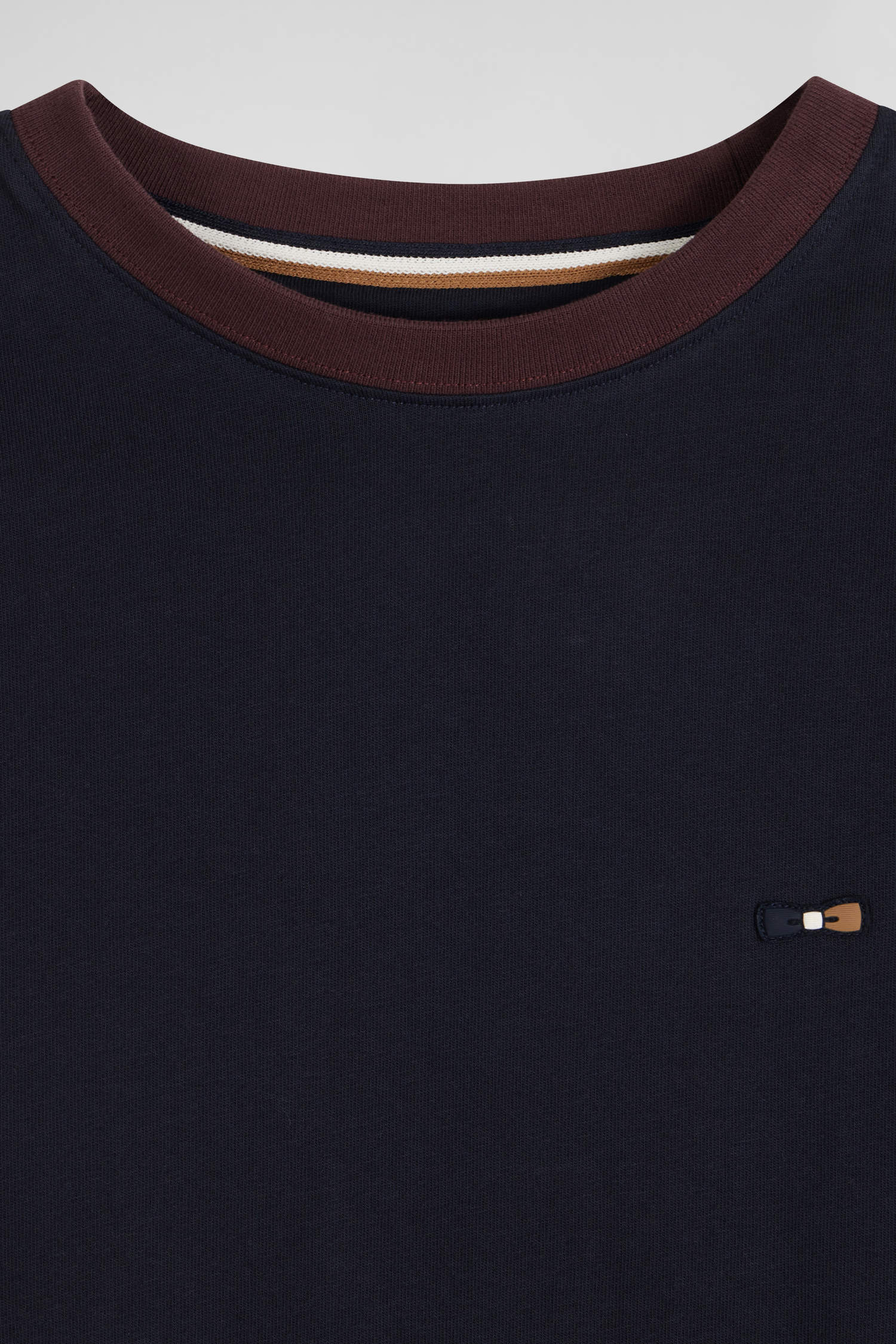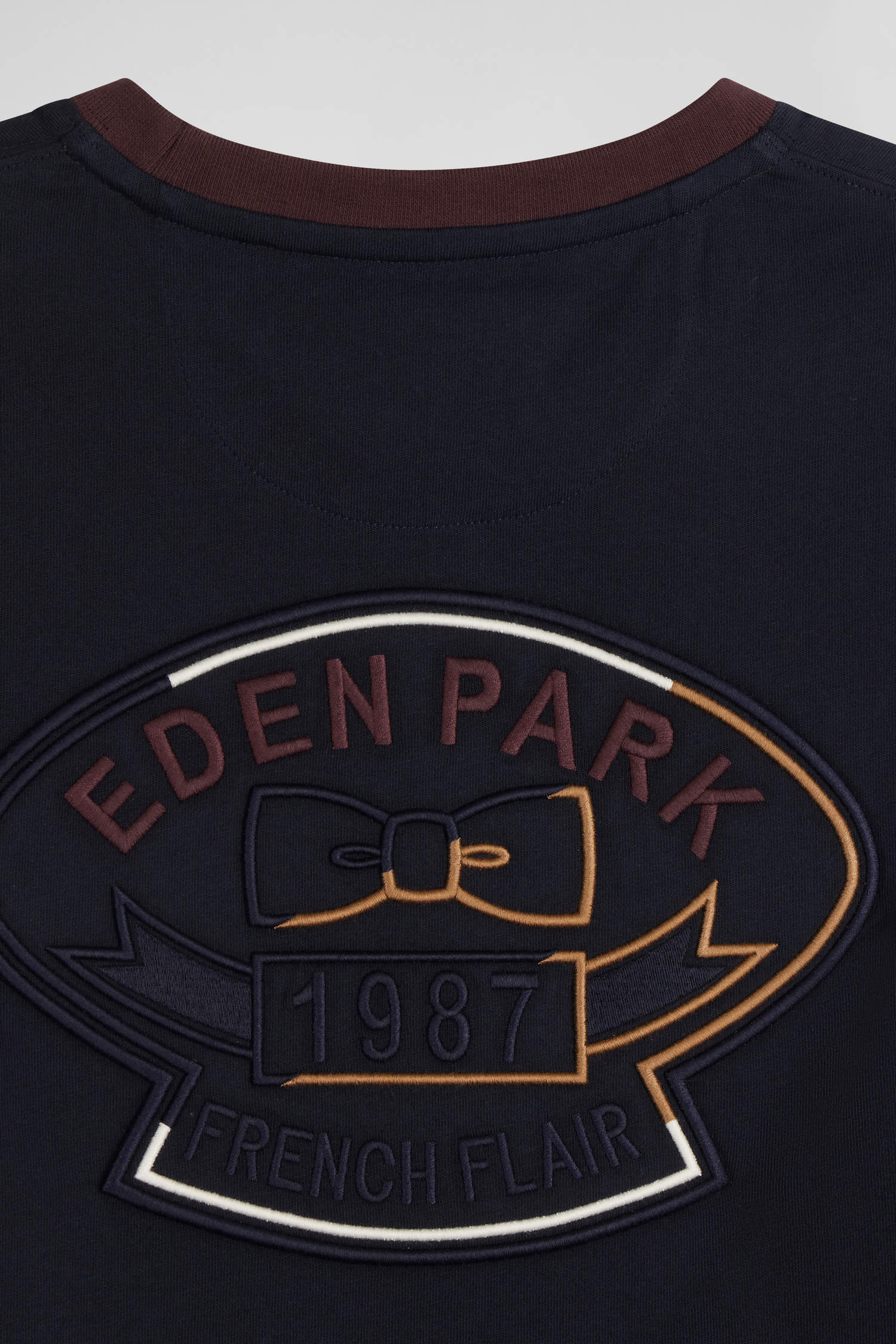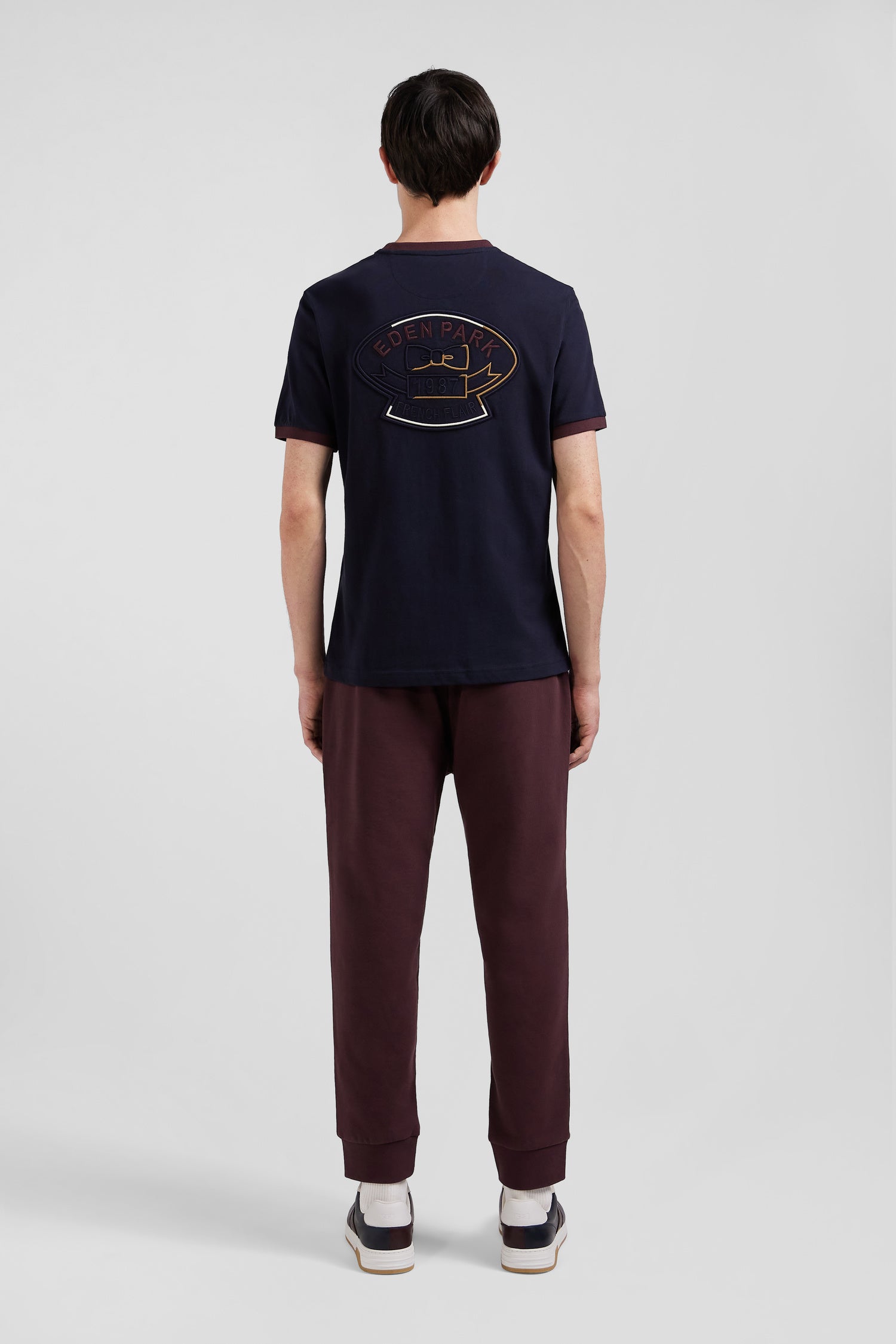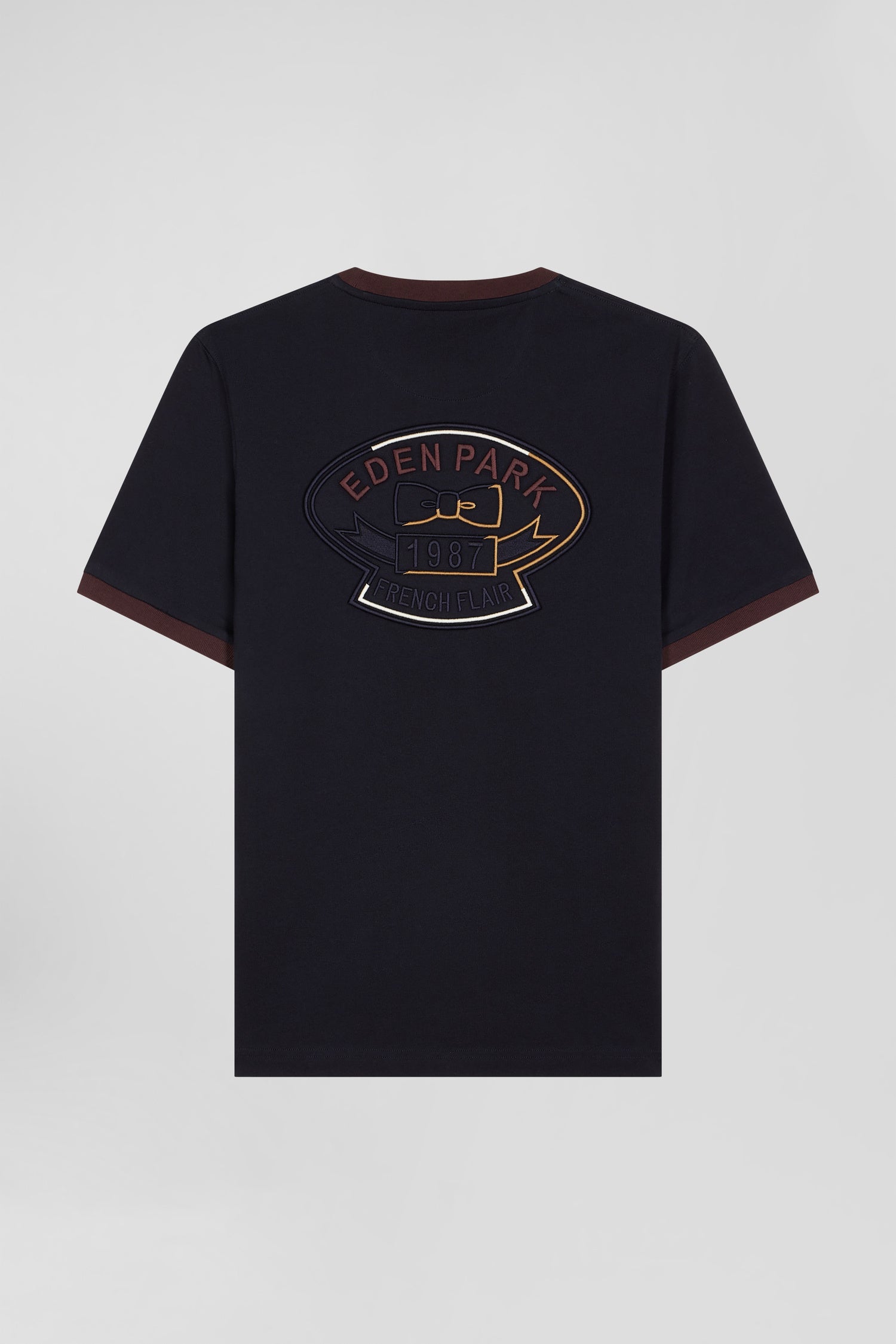 T-shirt manches courtes en coton marine broderie dos coupe Regular