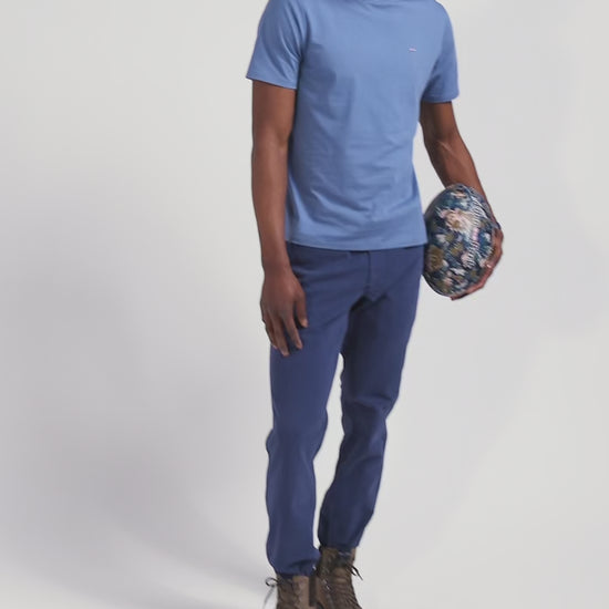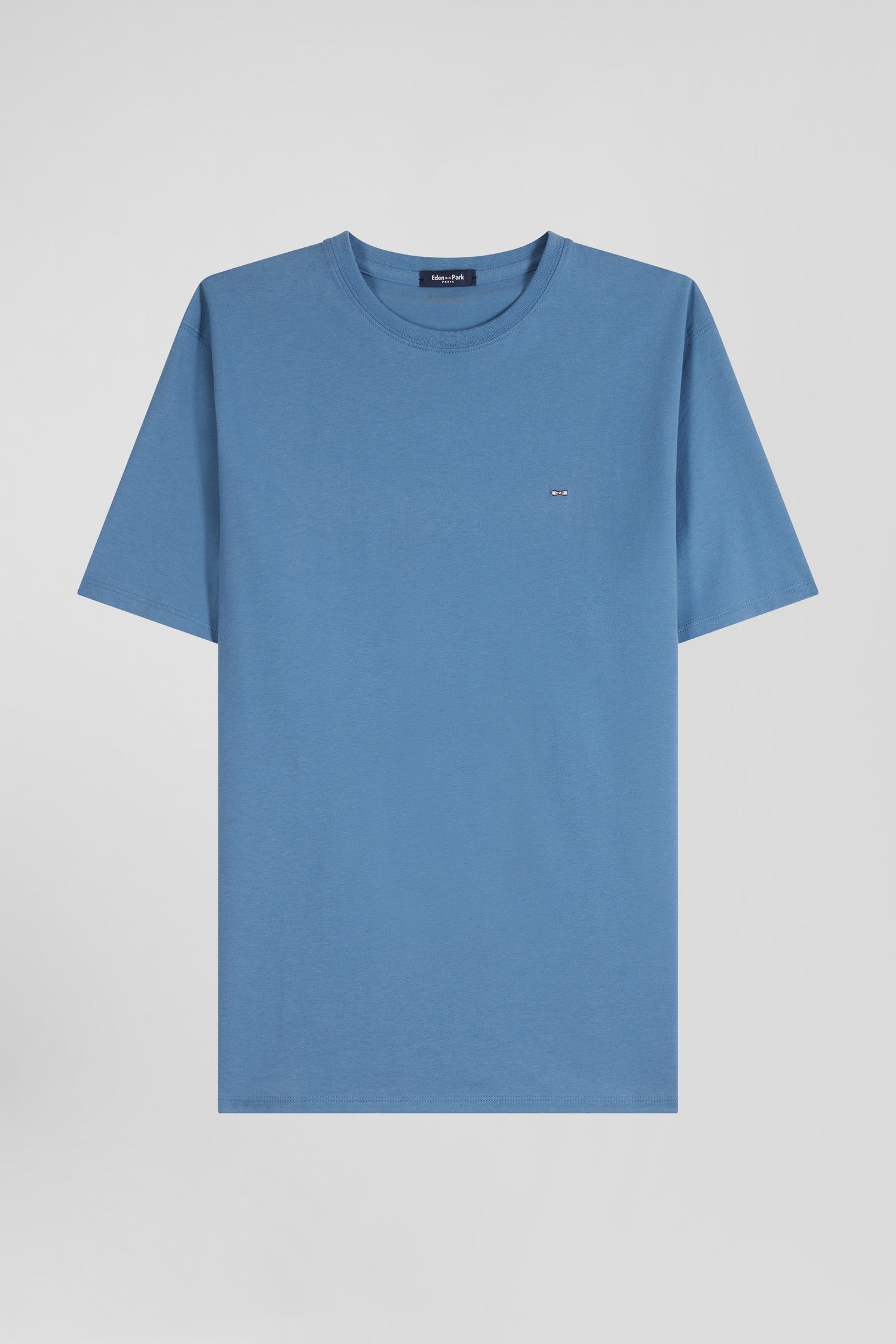 T-shirt manches courtes en coton Pima uni bleu coupe Regular