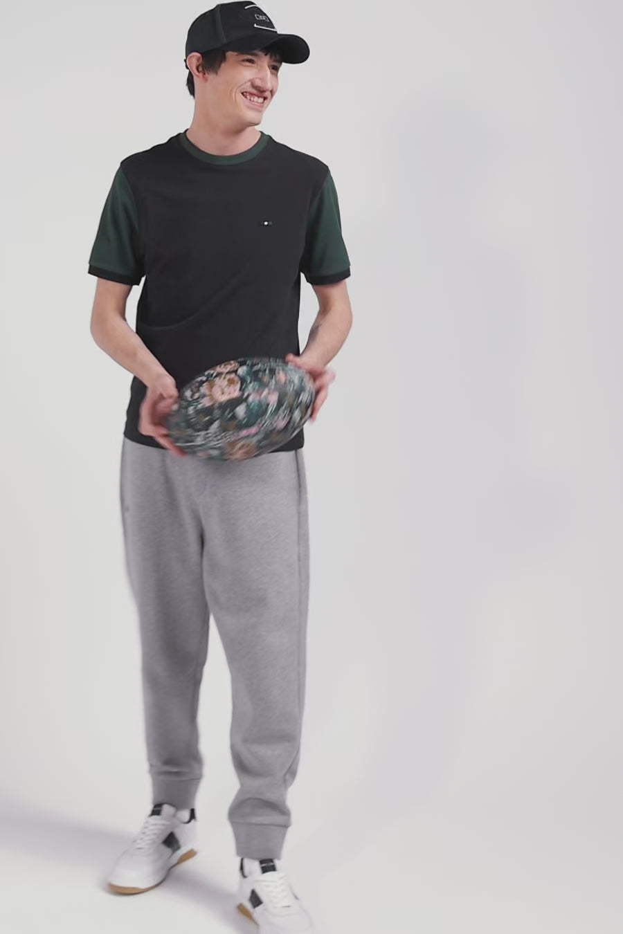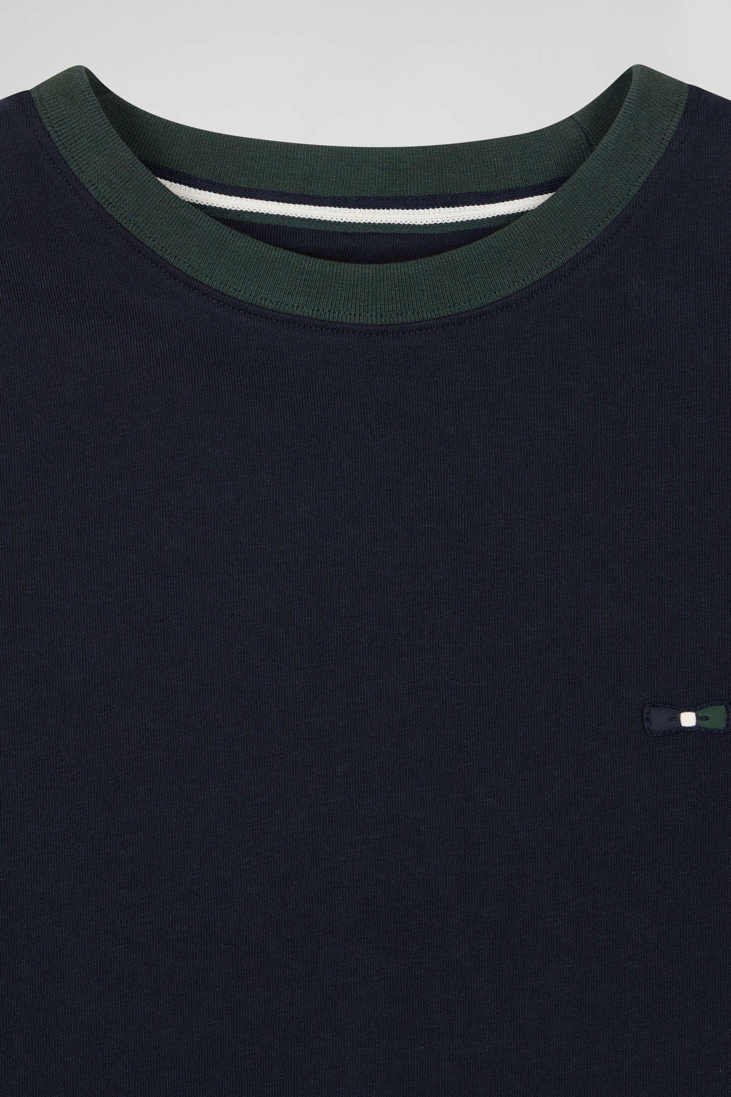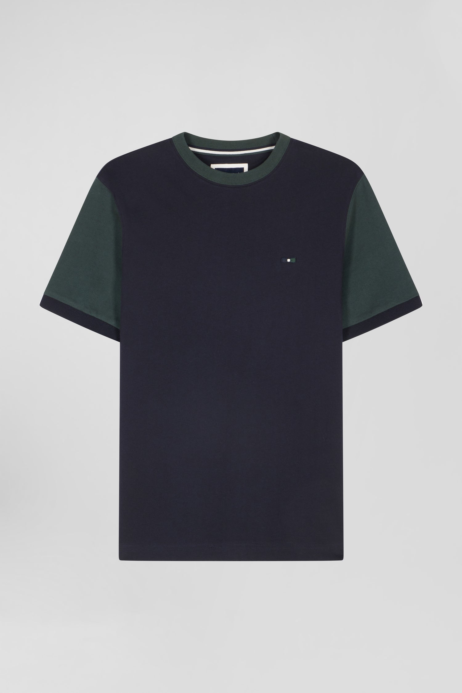 T-shirt manches courtes en coton vert à manches contrastées coupe Regular