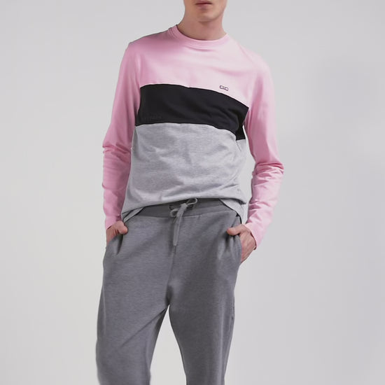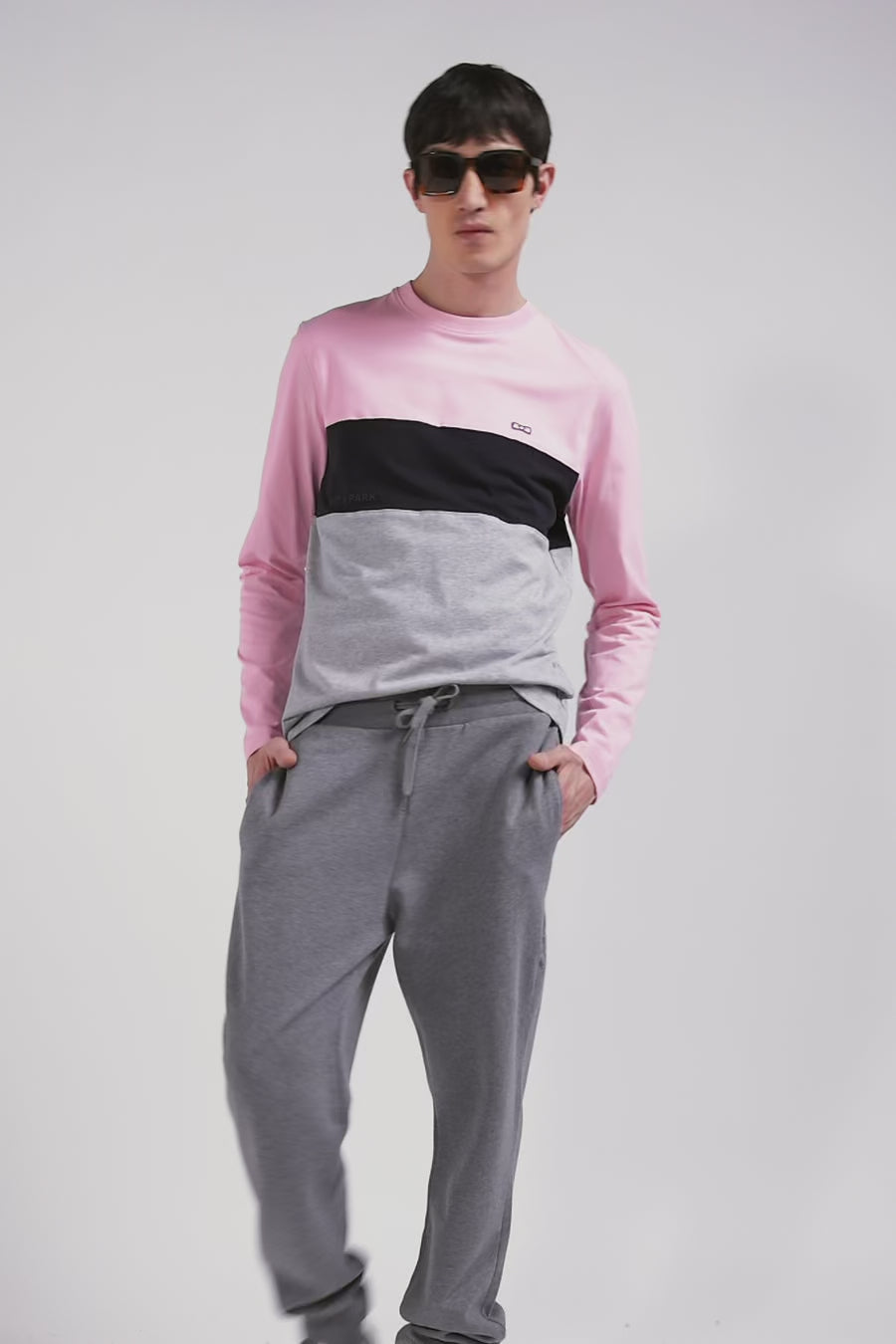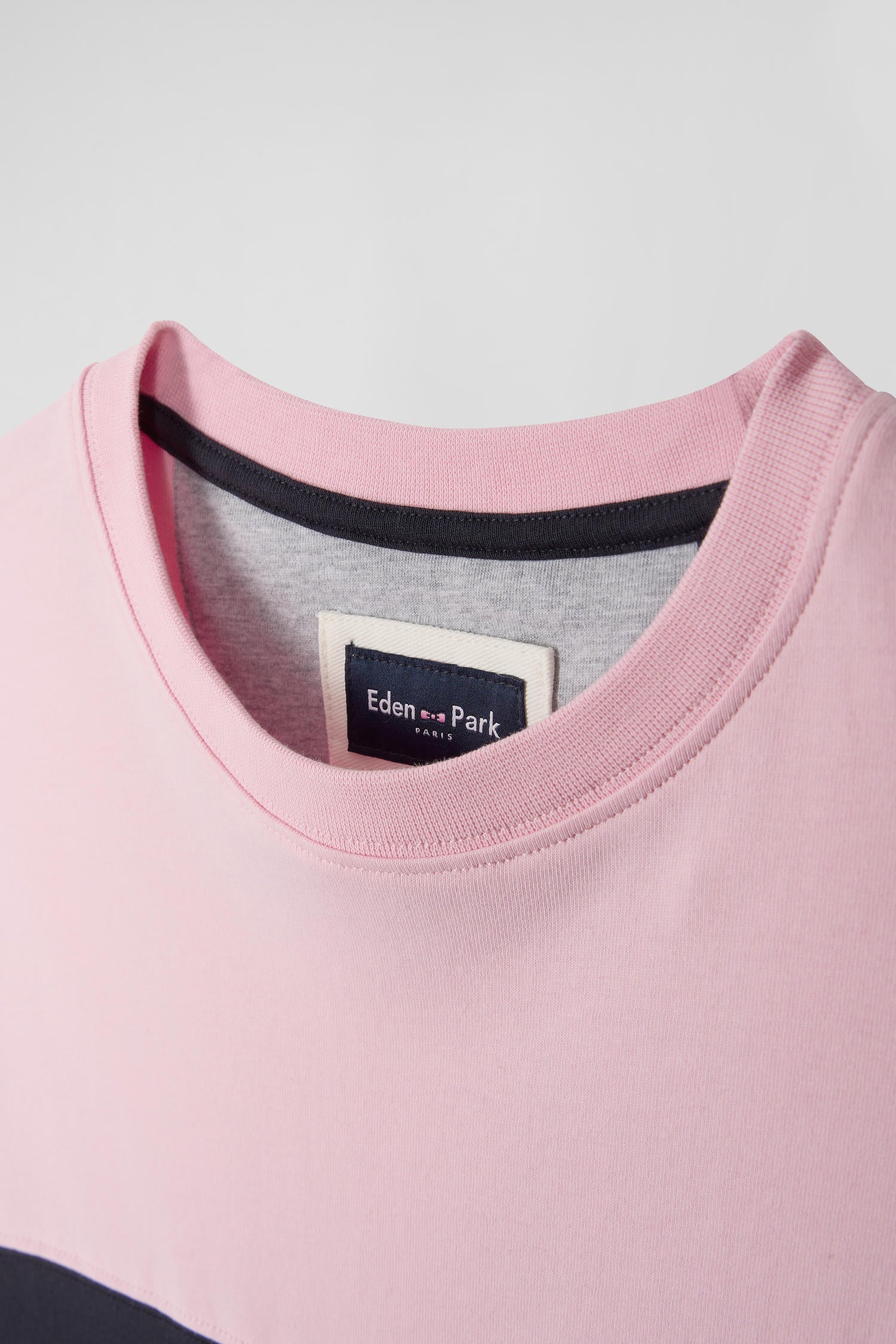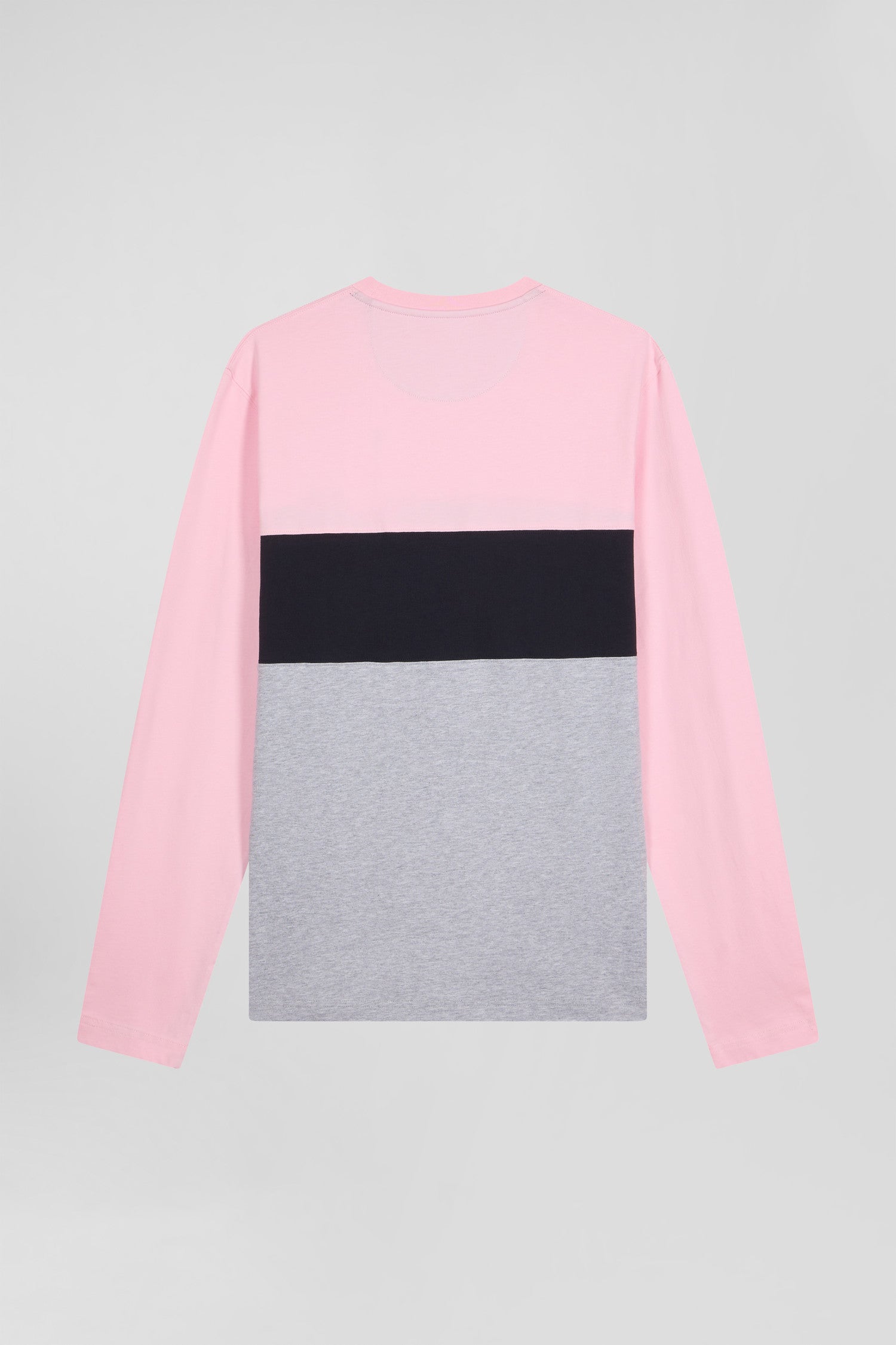 T-shirt manches longues colorblock en coton rose coupe Regular
