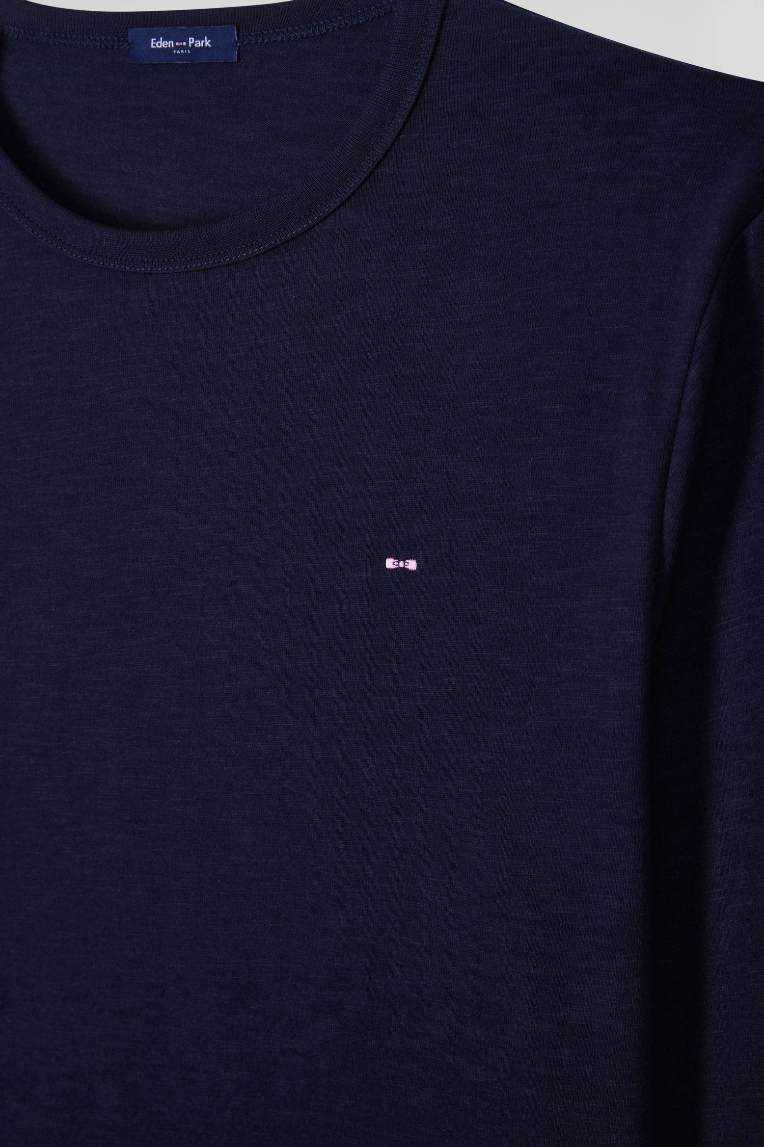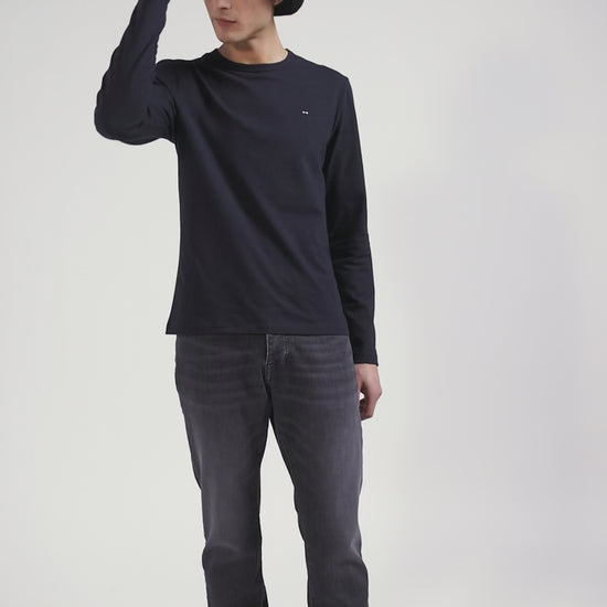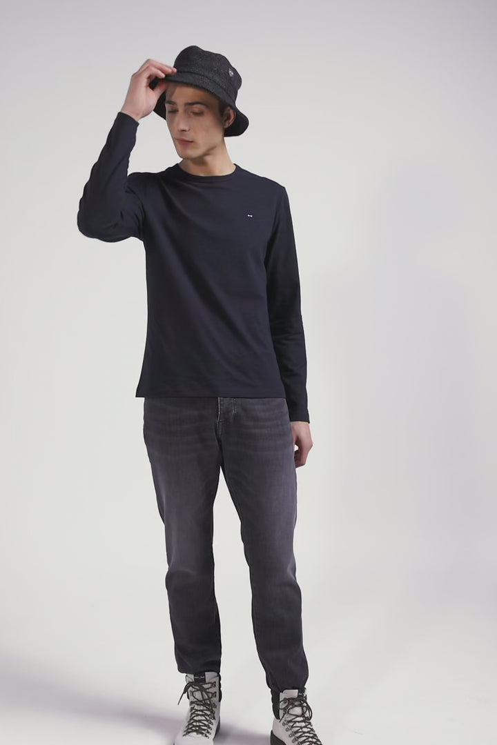 T-shirt manches longues en coton uni bleu marine coupe Slim