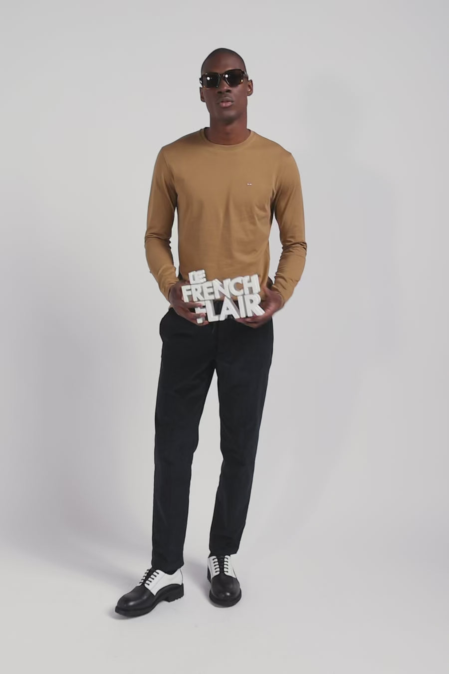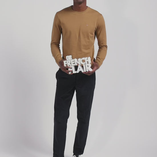 T-shirt manches longues uni en coton noisette coupe Regular