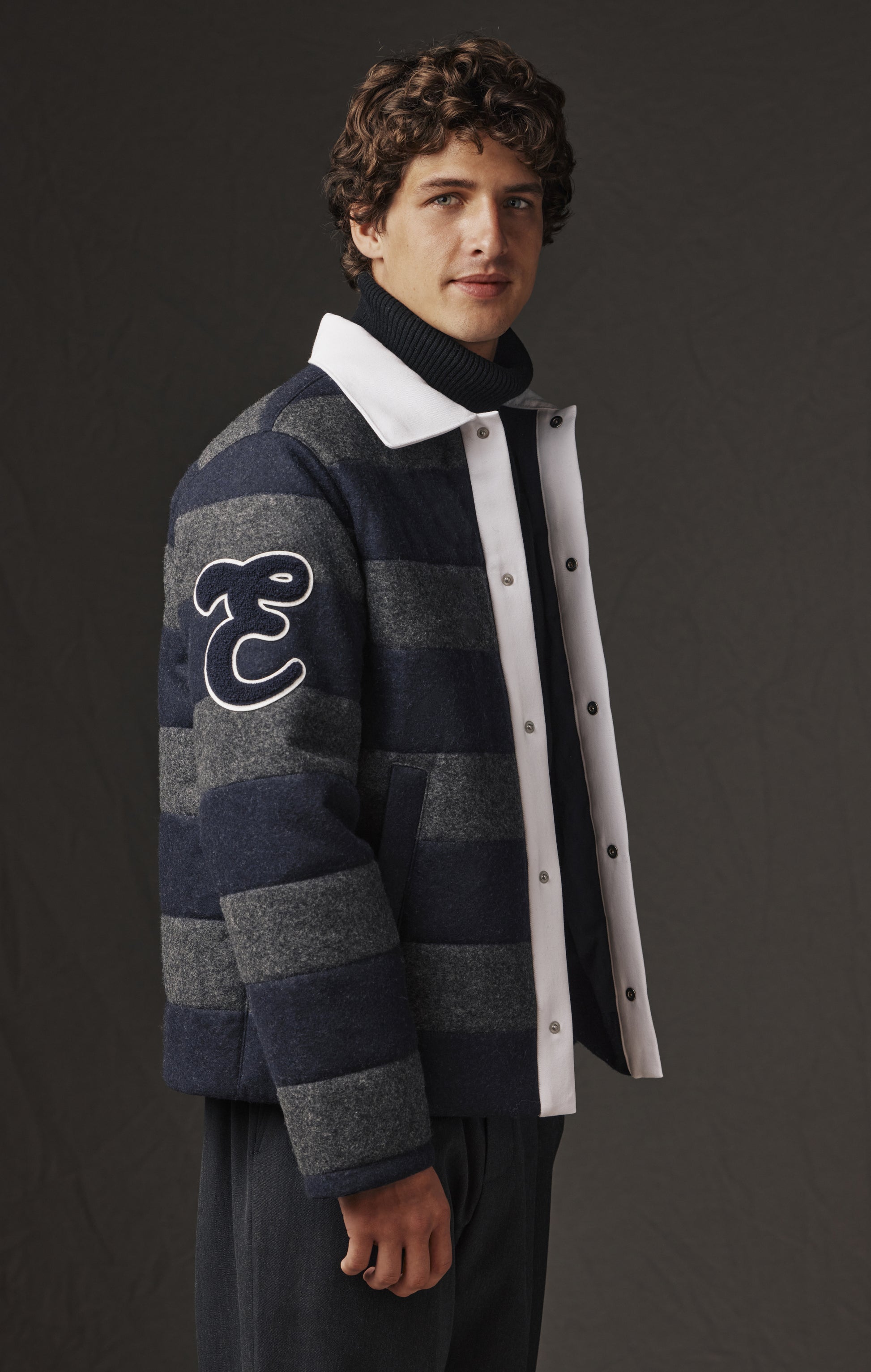 Cette veste pour homme est une pièce absolument unique qui vous assure de vous distinguer en un regard ! Intégralement réalisée artisanalement dans notre atelier parisien elle est issue de l'upcycling d'éléments provenant de nos archives. Façonnée dans l'esprit d'un maillot de rugby rayé pour une allure structurée et graphique, cette veste vous offre confort et chaleur grâce à son matelassage. Sa patte de boutonnage et son col chemise blancs ajoutent une touche d'éclat et d'élégance à cette veste masculine. Patchs et écussons signant cette pièce unique, vendue en exclusivité sur notre site internet pour une durée limitée, proviennent eux aussi de nos stocks dormants. Aussi pratique que confortable, cette veste Pap'Atelier en taille M dispose d'une poche intérieure zippée et de deux poches extérieures soigneusement passepoilées.