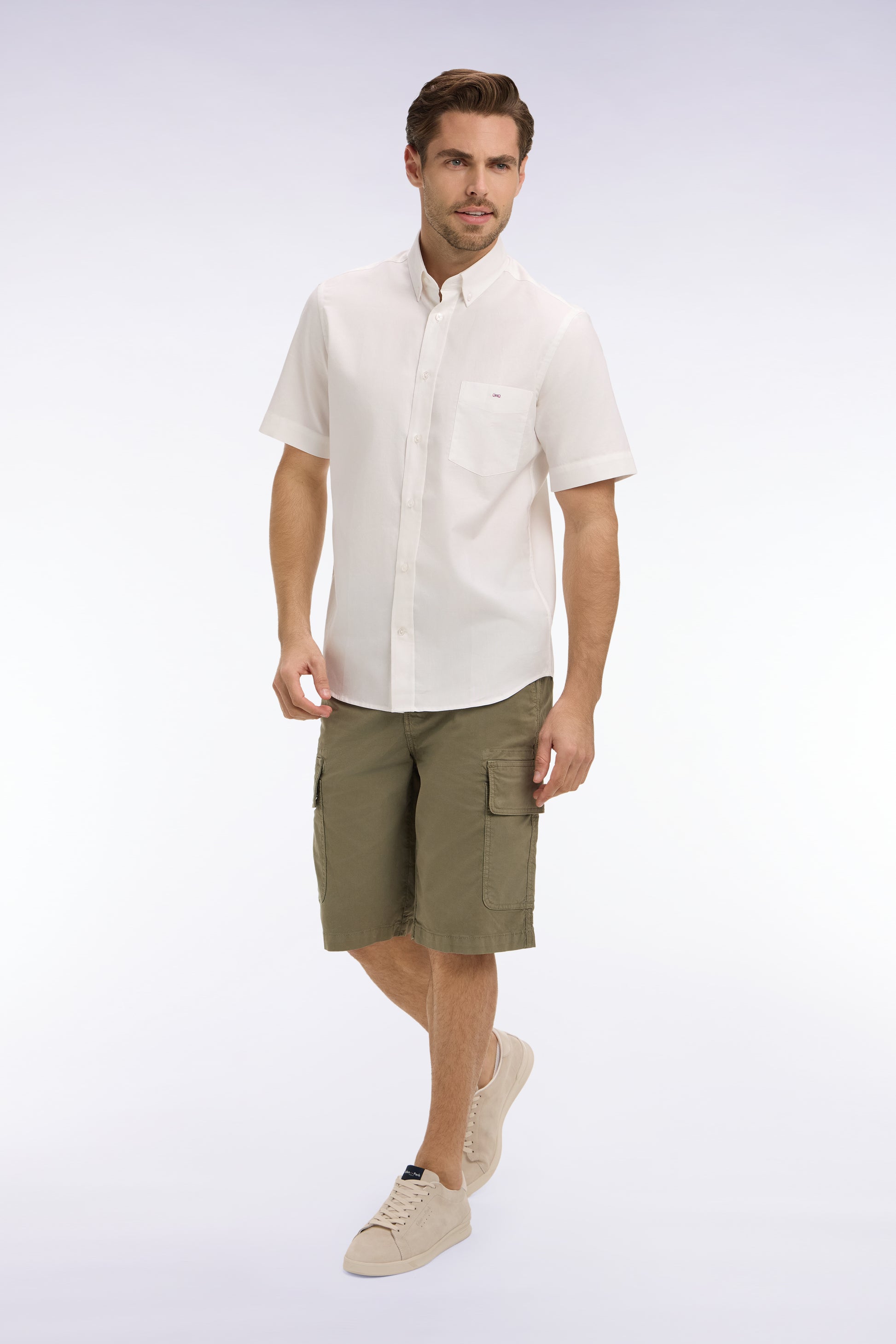 Le bermuda entre en jeu pour un match estival sous le signe du confort et du style. Offert dans une large palette de couleurs, des teintes intemporelles aux coloris de la saison pour s'accorder avec toutes les propositions mode de cette collection, ce bermuda en gabardine de coton stretch s'inspire du chino dont il conserve les finitions essentielles. Poches passepoilées, poches dos boutonnées et boutons siglés : rien n'est laissé au hasard.