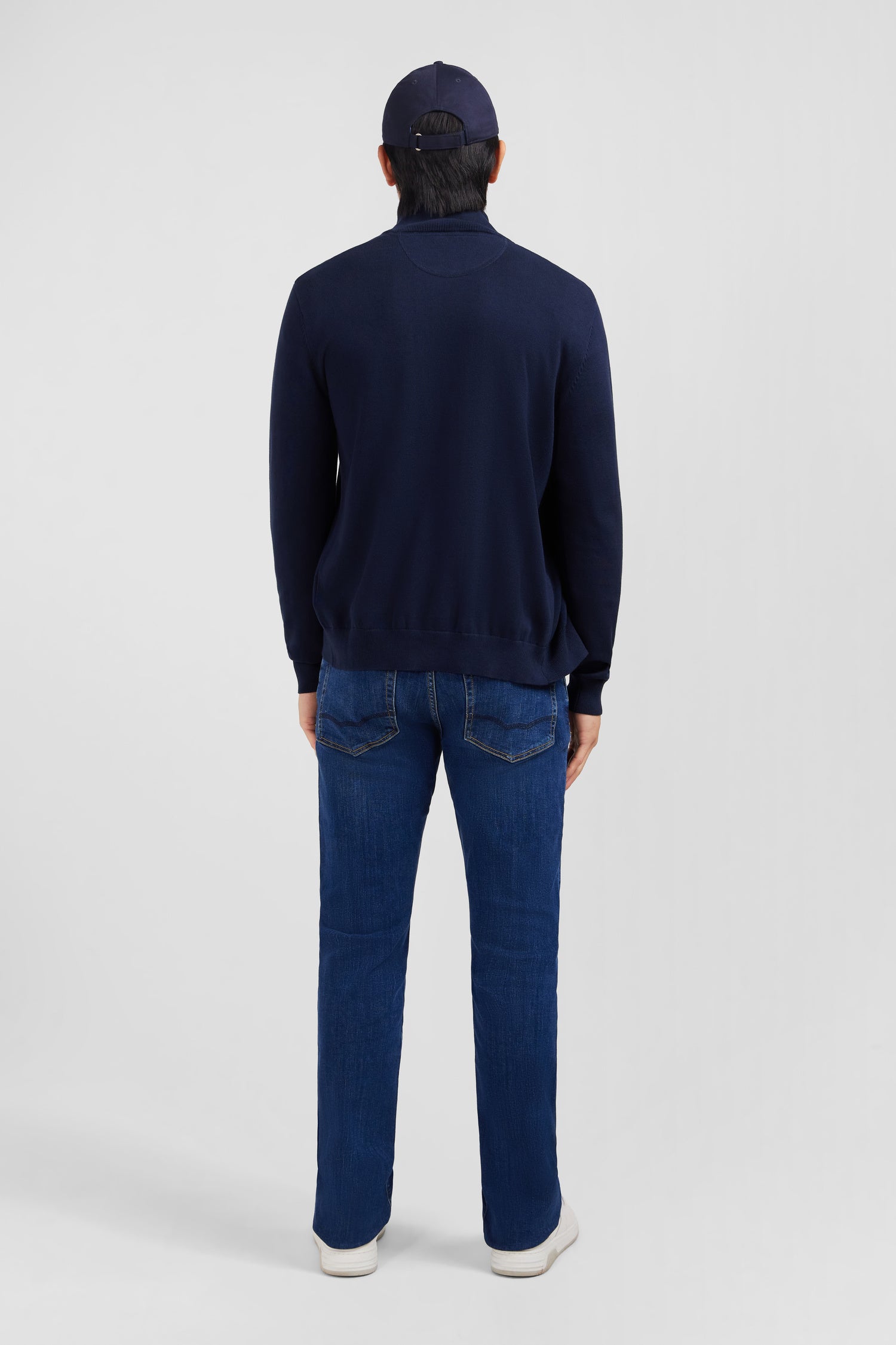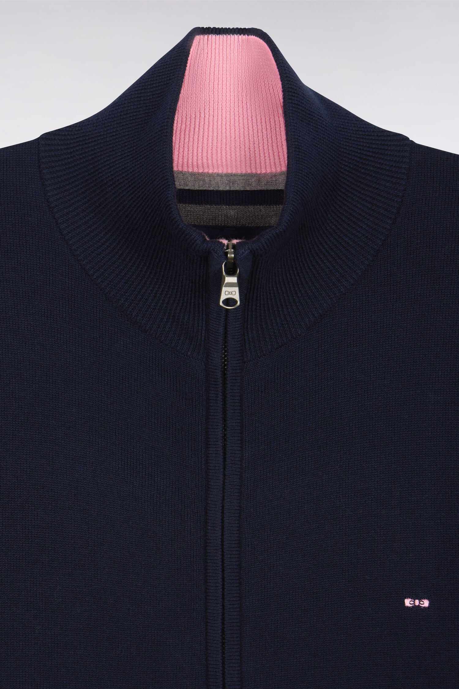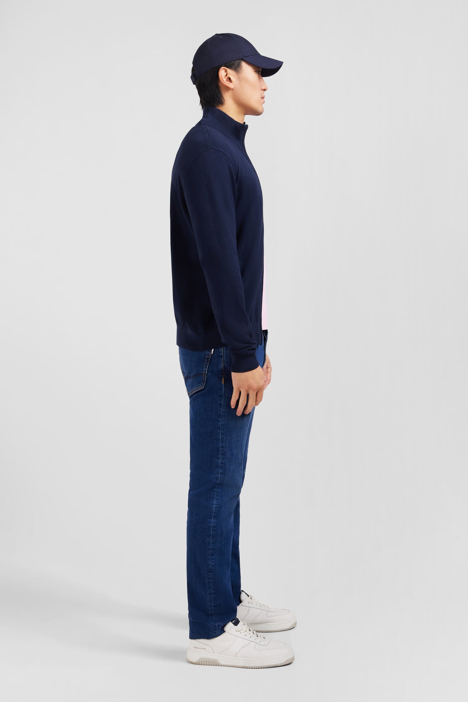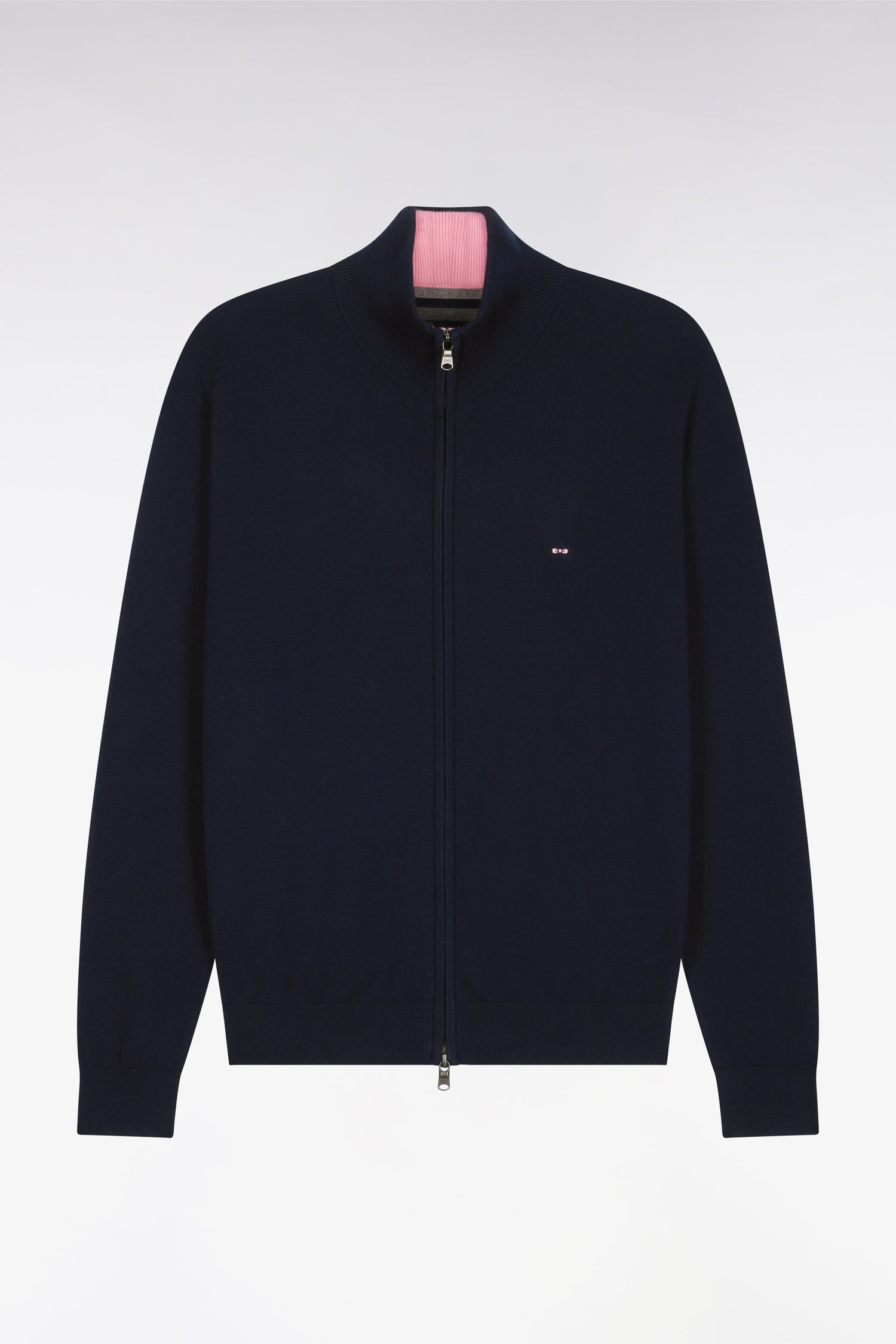 Understatement and a sporty design characterise this zip cardigan with an enveloping collar. Crafted in soft cotton jersey, this chic, comfortable piece is a natural-born winner. In the heart of winter, warm up this timeless classic with a solid wool coat and ribbed beanie.