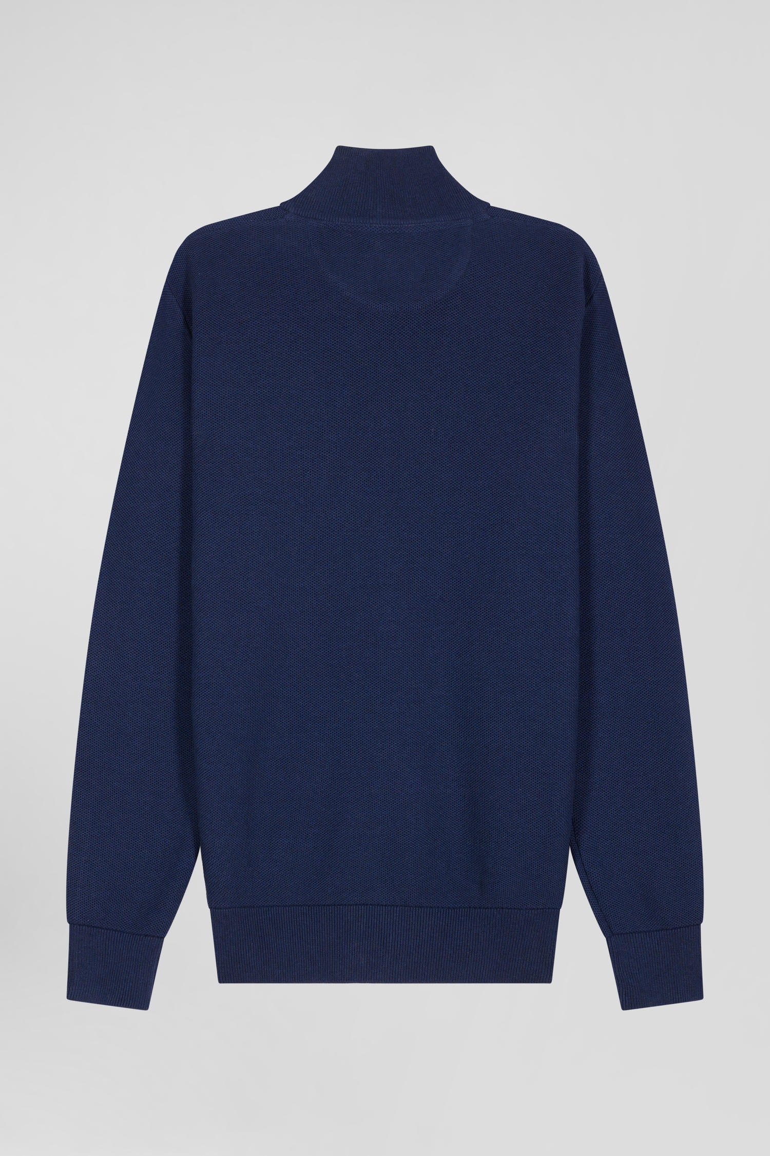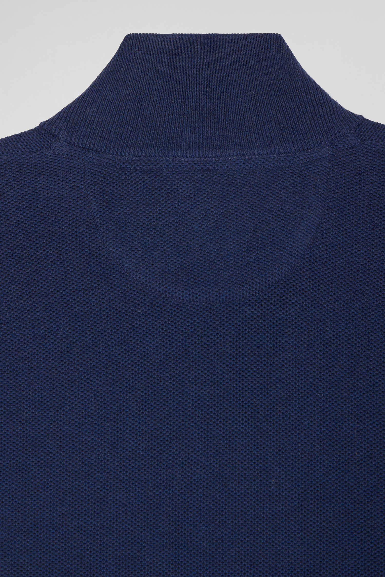 Regular plain navy blue cotton high collar zipped cardigan