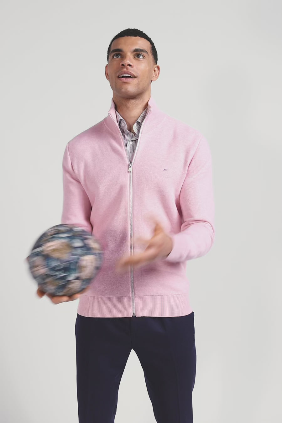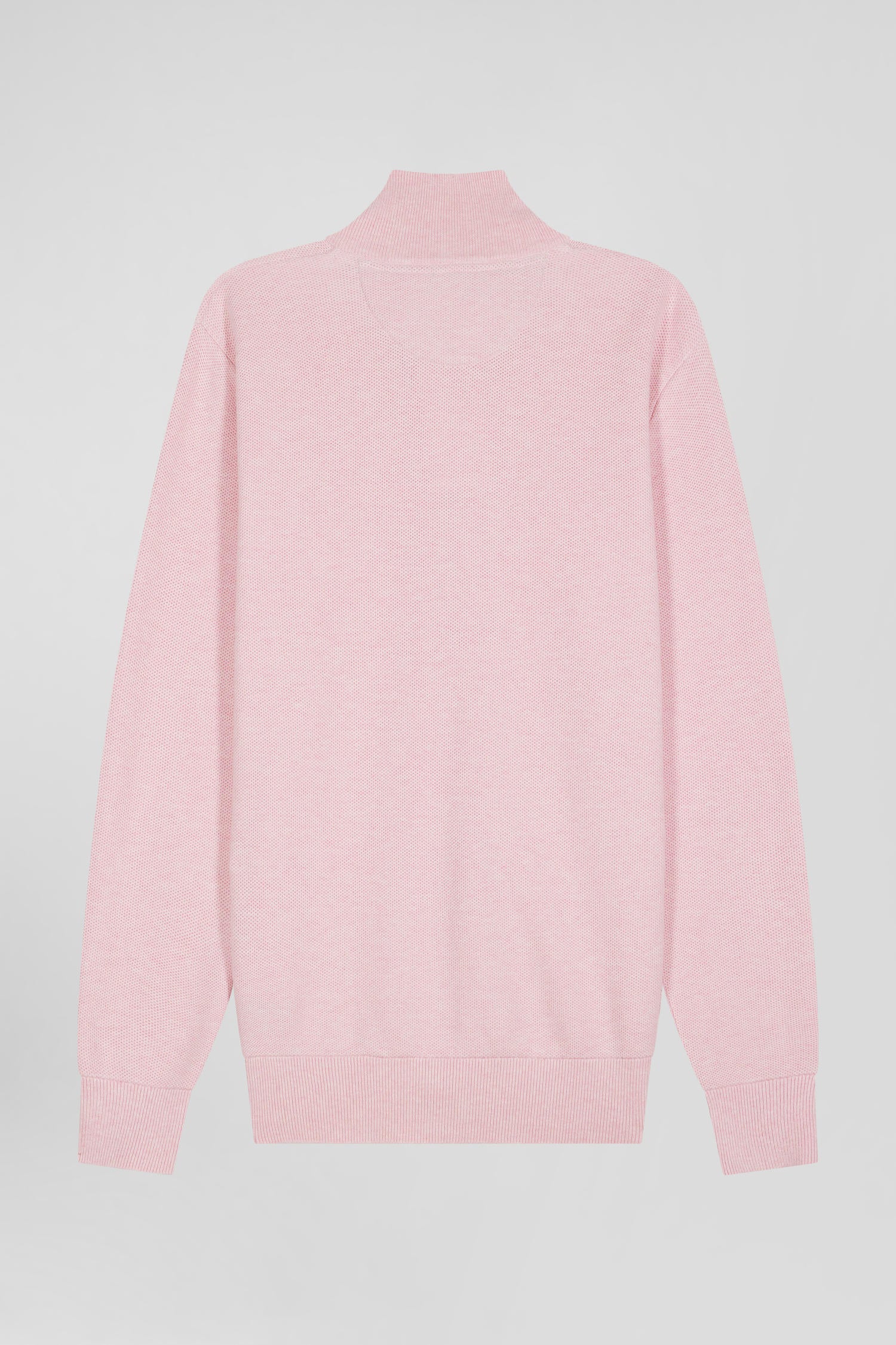 Regular plain pink cotton high collar zipped cardigan