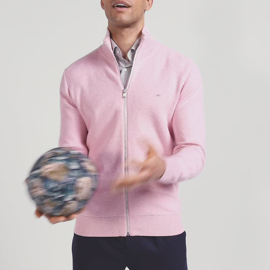 Our cotton zip-up cardigan is available in a range of our House's signature colors. Designed to offer both warmth and style, this versatile cardigan with its meticulous finishing touches is a men's wardrobe essential.