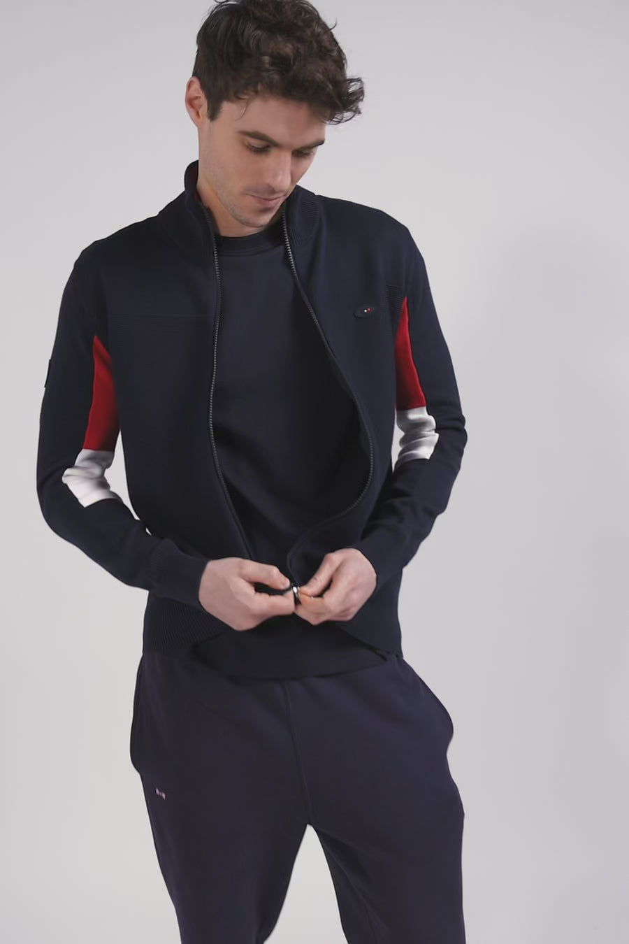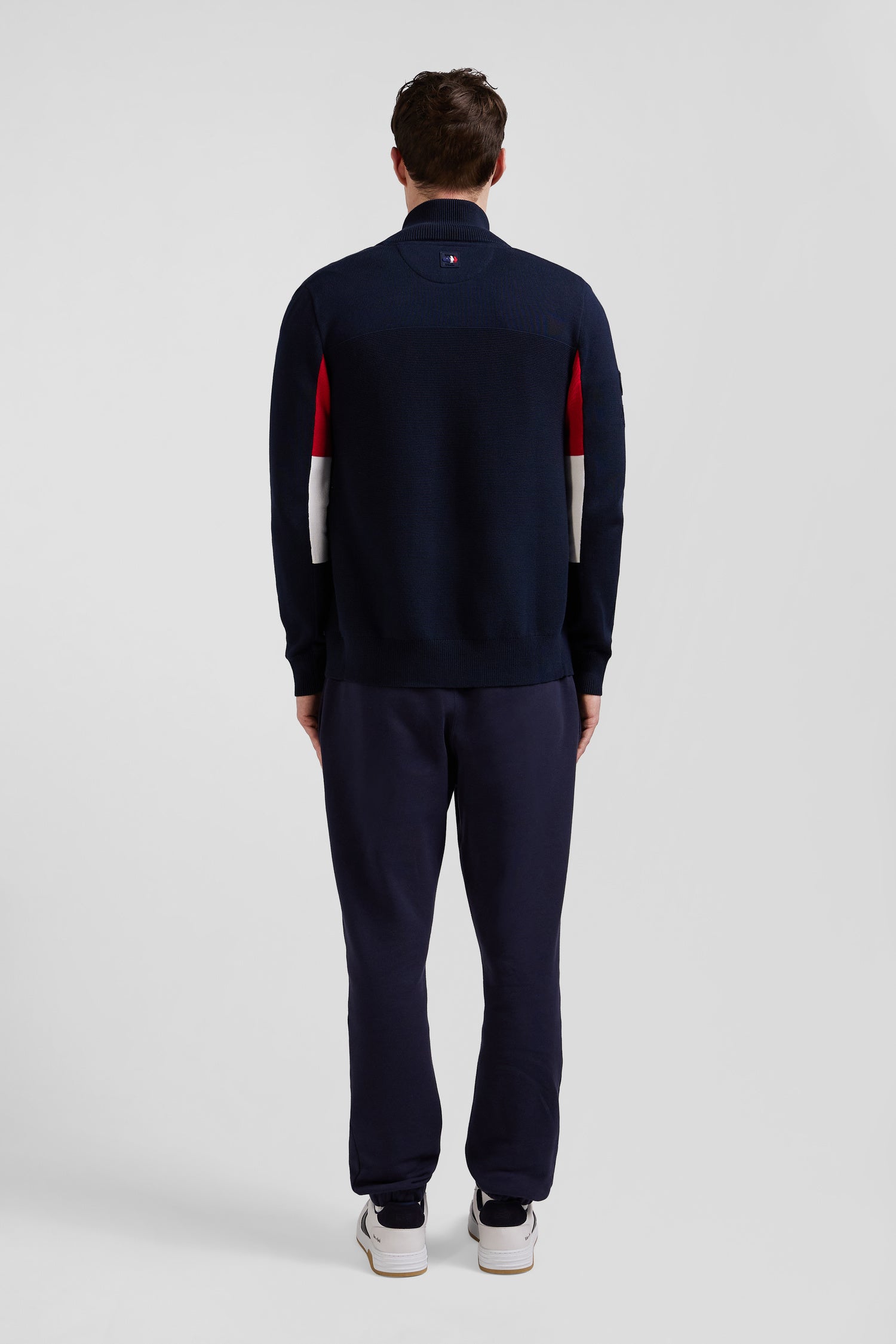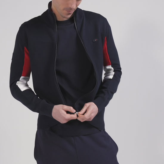 Regular XV de France navy blue cotton zipped cardigan with tricolour details