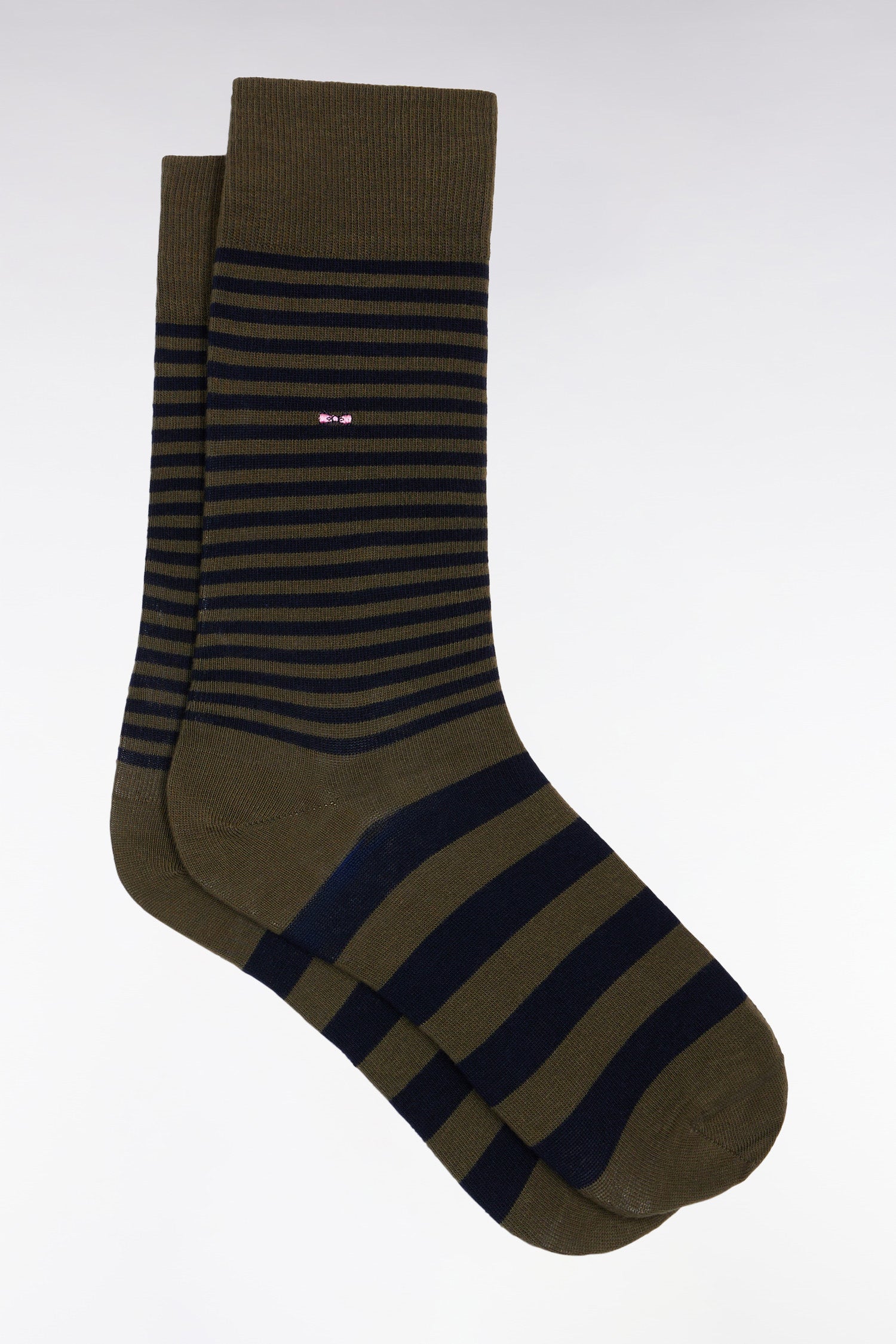 Striped khaki cotton blend socks