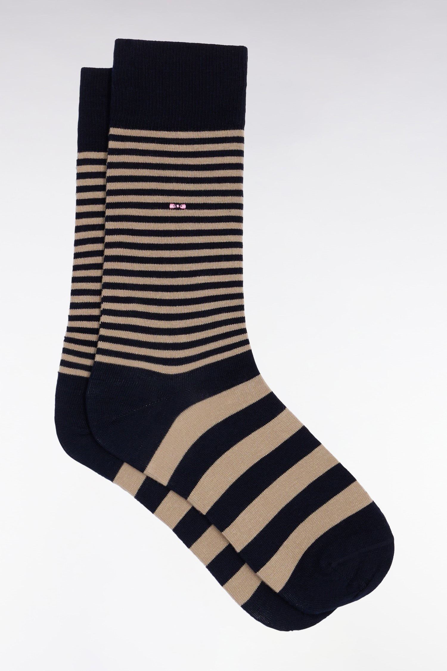 Rugby stripes and a choice of colors: these striped cotton blend socks add a graphic touch to your wardrobe. A comfortable model, perfect for your everyday silhouettes.