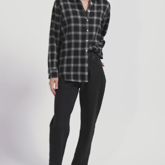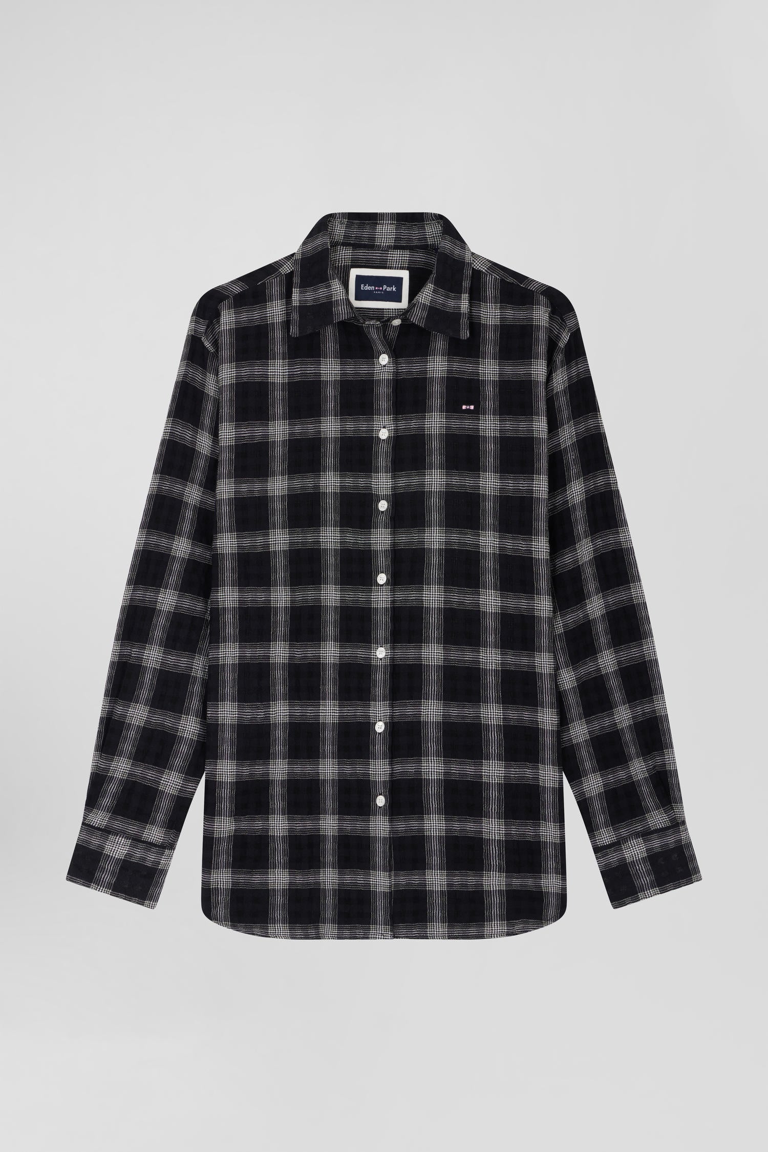 Relax black checked wool and cotton shirt