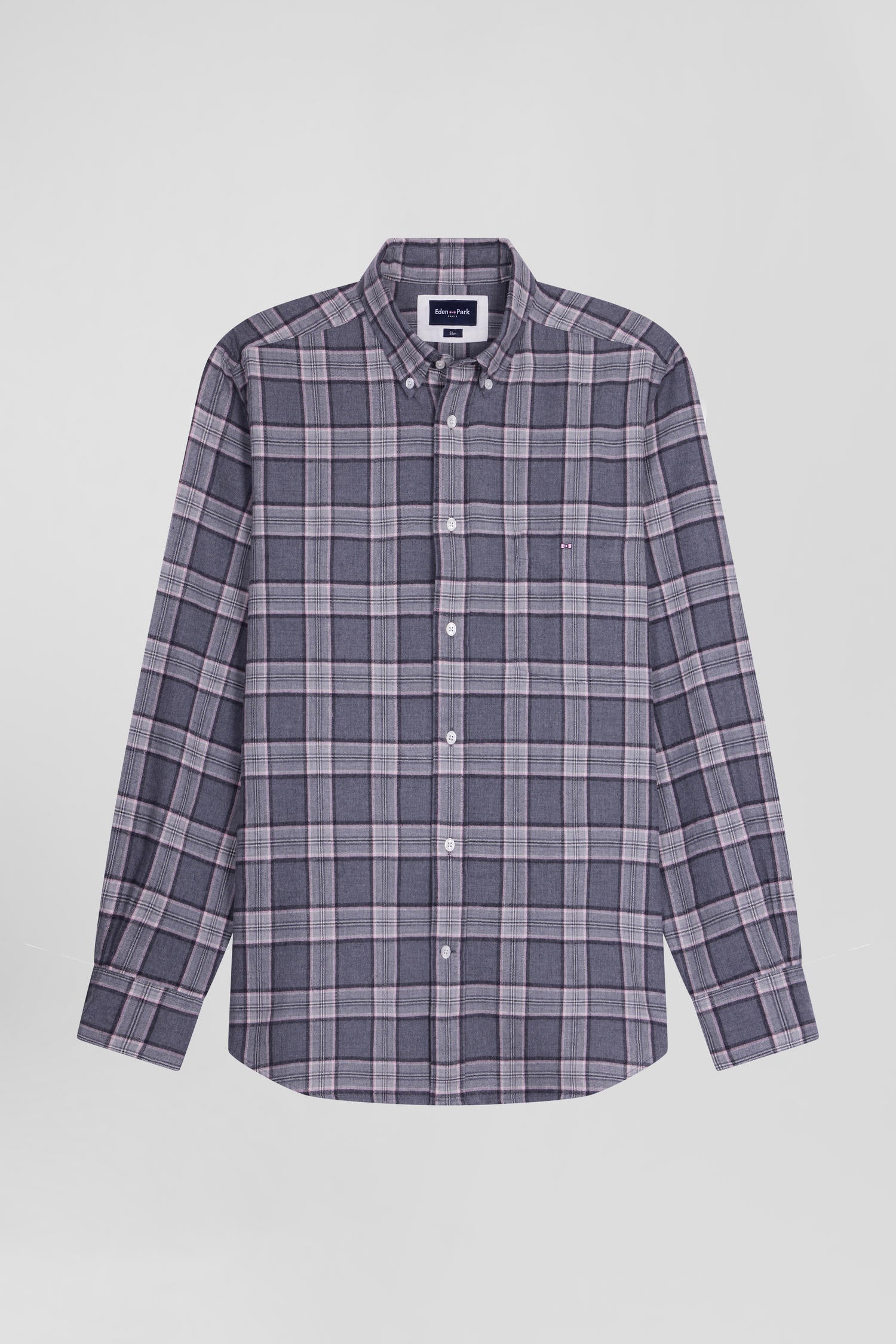 This men's plaid shirt in cotton twill, a high-quality Italian fabric, comes in a gray hue or a combination of navy and pink. Renowned for its softness and durability, cotton twill gives this shirt a touch of unrivalled refinement and comfort.